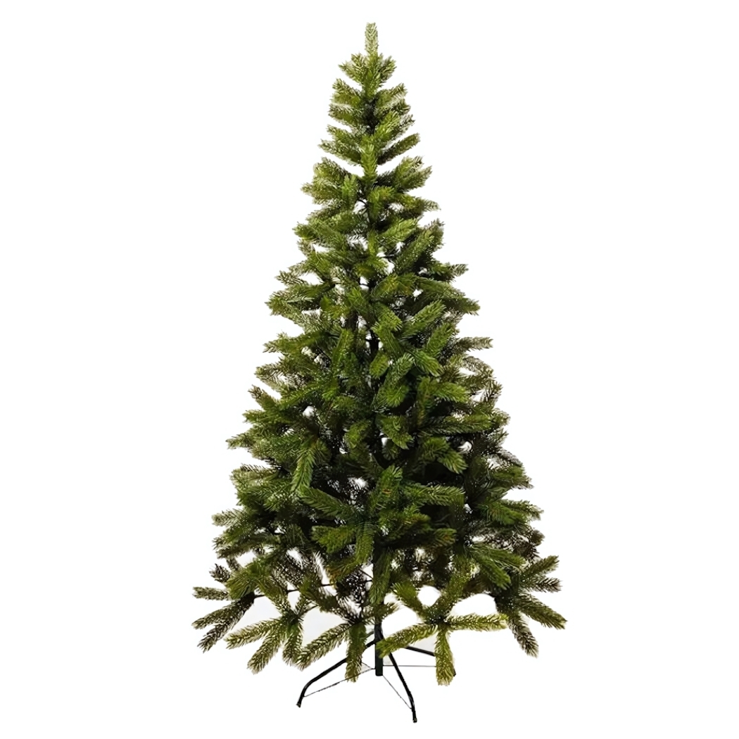 Искусственная елка высотой 150 см и диаметром у нижнего яруса 90 см — идеальное решение для создания праздничной атмосферы в доме или офисе. Благодаря 320 веткам, выполненным из высококачественного ПВХ, она обладает густотой и реалистичным внешним видом, создавая эффект настоящей хвойной ели. Надежная металлическая подставка обеспечивает устойчивость, а конструкция из сегментов легко собирается и разбирается, занимая минимум места при хранении.