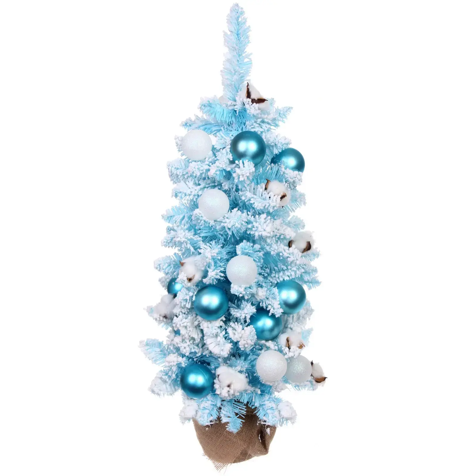 Елка «Нежность» имеет 136 веток, что придает ей объемный и пушистый вид. Она украшена разнообразными шарами голубого и белого цветов, а также хлопковыми элементами, имитирующими снег. Высота 90 см делает ее идеальной для настольного размещения. Елка выполнена из качественных материалов, таких как металл и ПВХ, что гарантирует ее долговечность и надежность.