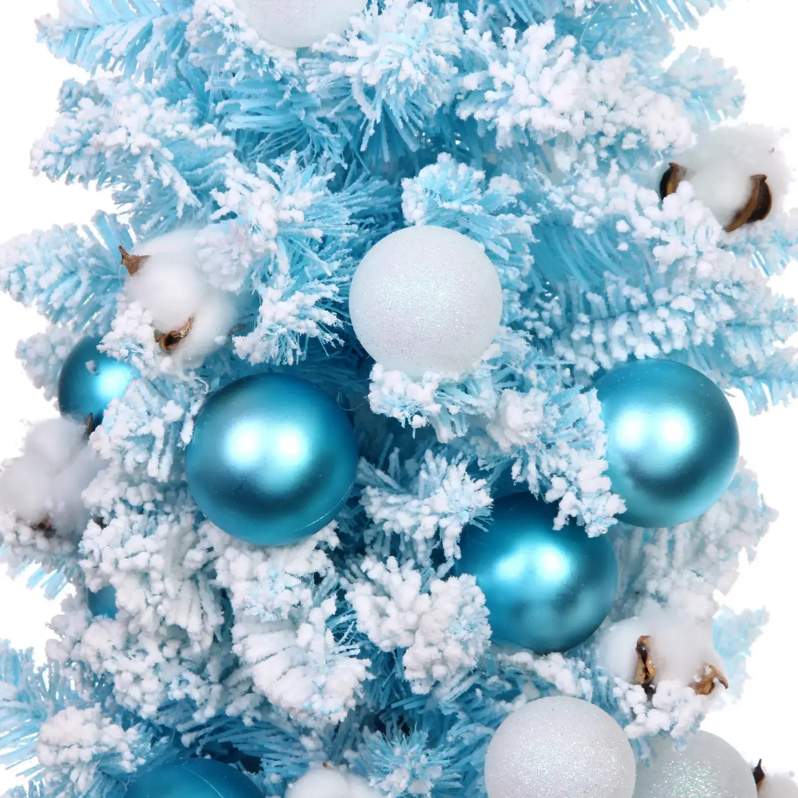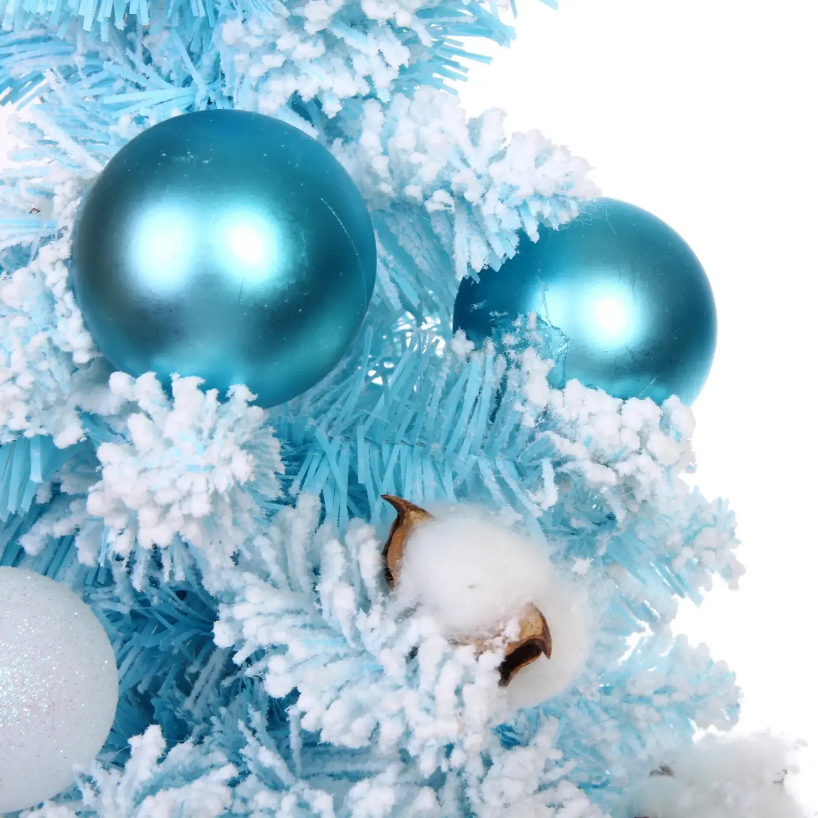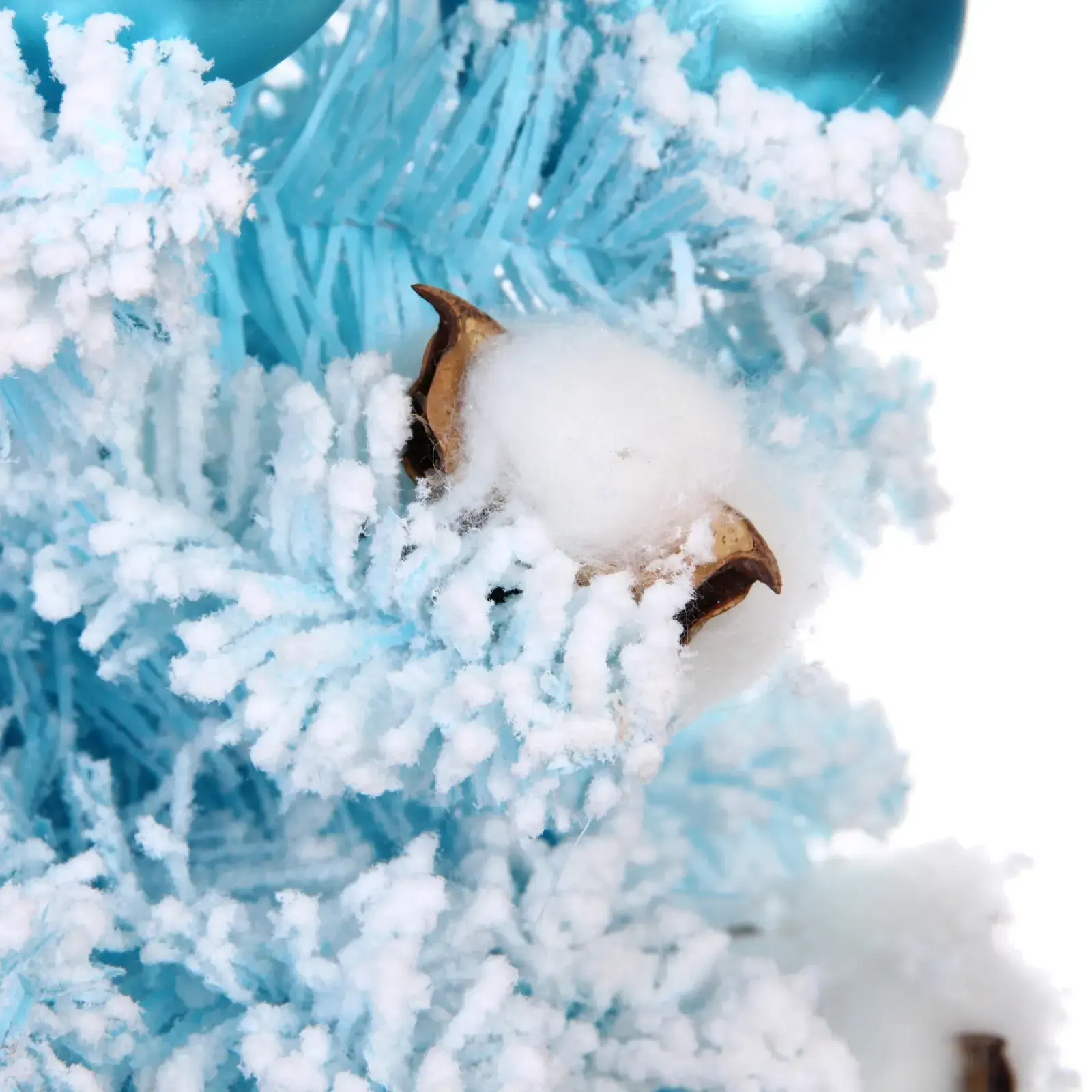 - Эстетичный внешний вид: голубые и белые декоративные элементы, включая шарики и хлопковые детали, создают эффект зимнего оформления.