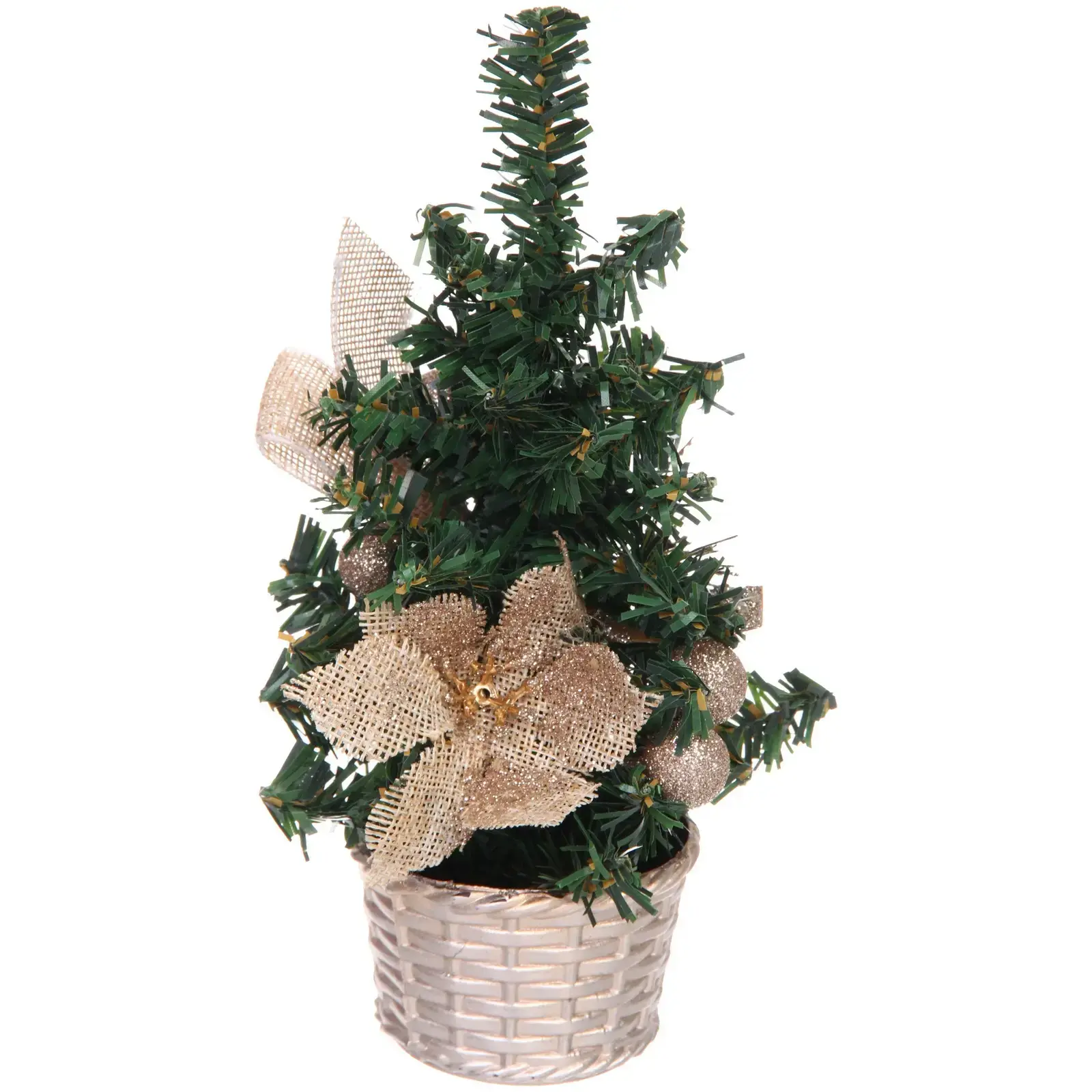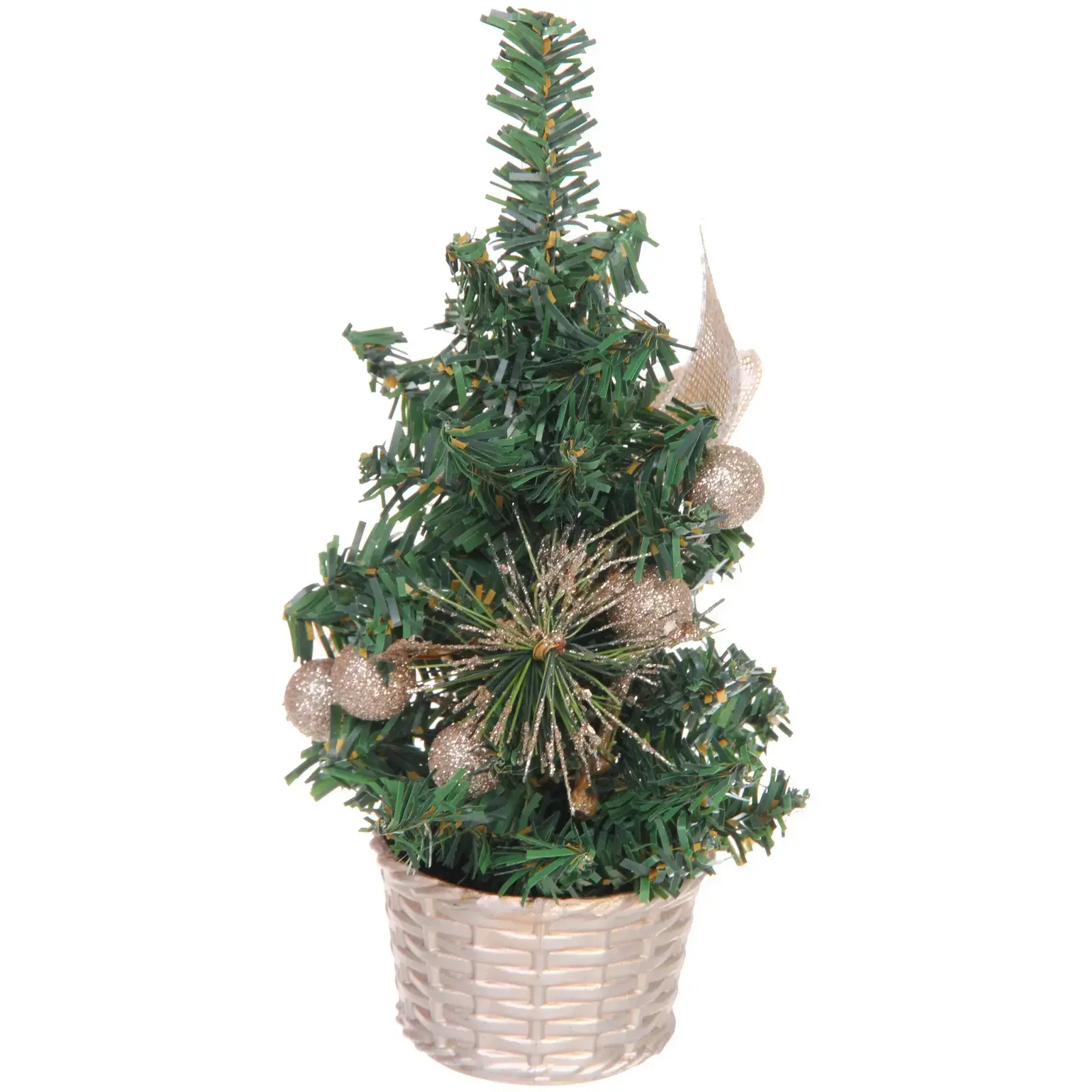 Елка декоративная 'Сказочный блеск' 20см, цвет шампань, в плетеном кашпо