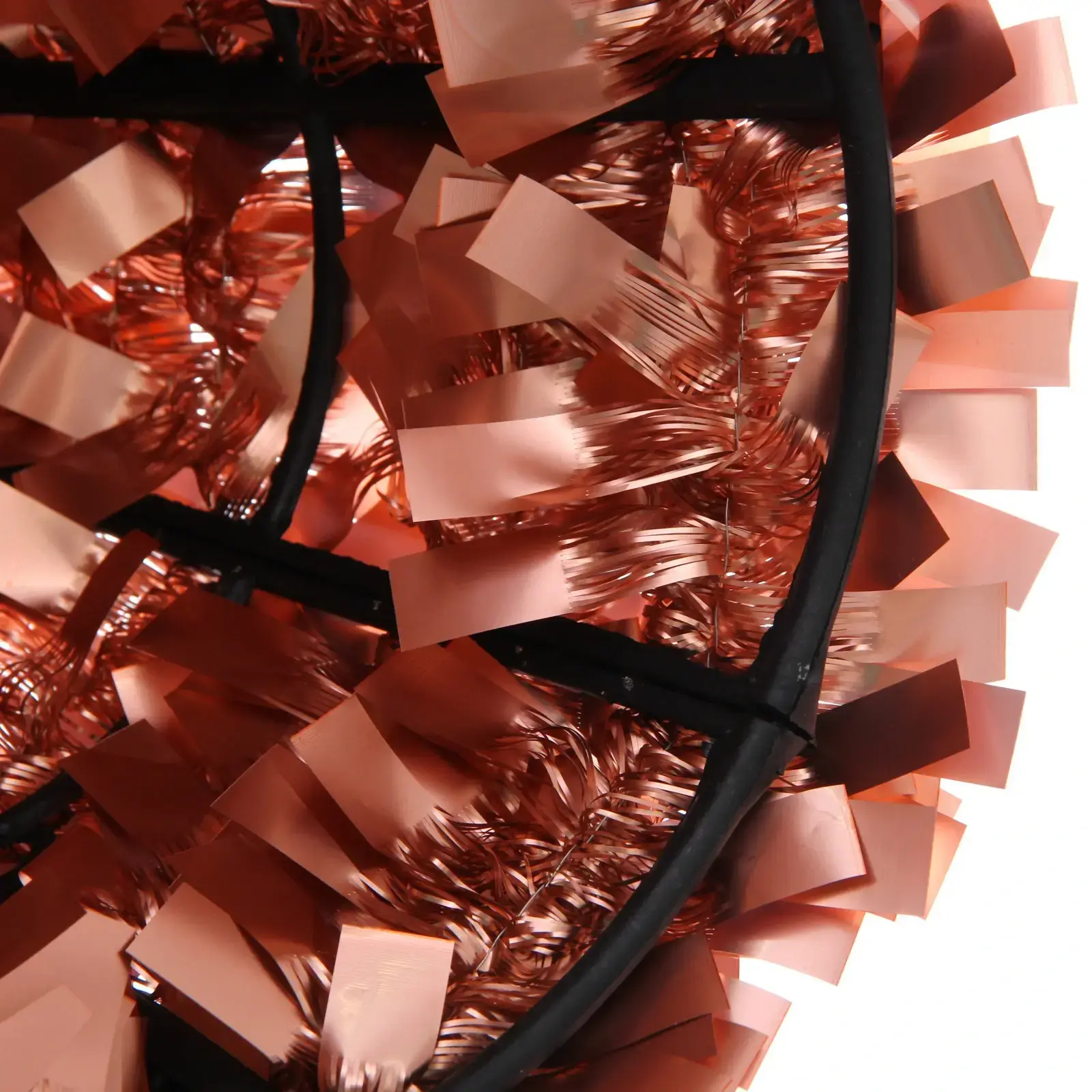 Высота изделия — 50 см, материал — ПВХ с металлическим блеском, цвет — медный. Ель обладает имитацией классической формы с множеством мелких элементов, создающих эффект натуральной елочной плотности. Используйте ее для украшения стен, комната или подарочных зон, чтобы подчеркнуть стильный и праздничный дизайн вашего интерьера.