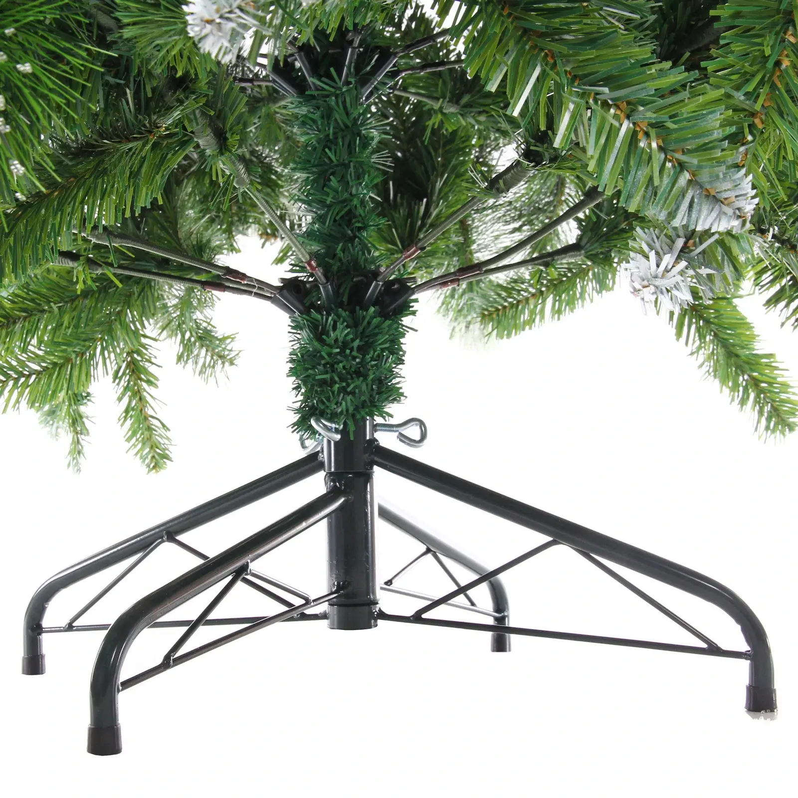 Дерево имеет устойчивую конструкцию благодаря черному металлическому каркасу, что гарантирует безопасность при установке. Его плотные и пушистые ветви создают объемную форму, которая сохраняется весь период использования.