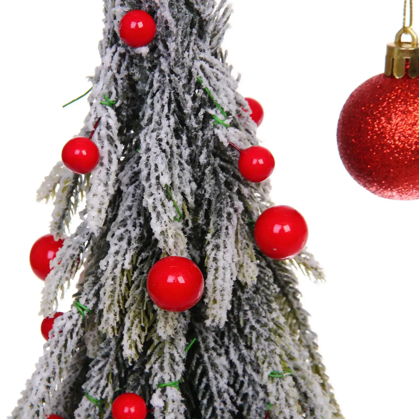 Изделие из качественного ПВХ сохраняет форму при многократном использовании. Искусственные иглы не осыпаются, а снежное покрытие не теряет белизну со временем. Красные шарики с глянцевой поверхностью создают праздничные блики при освещении.