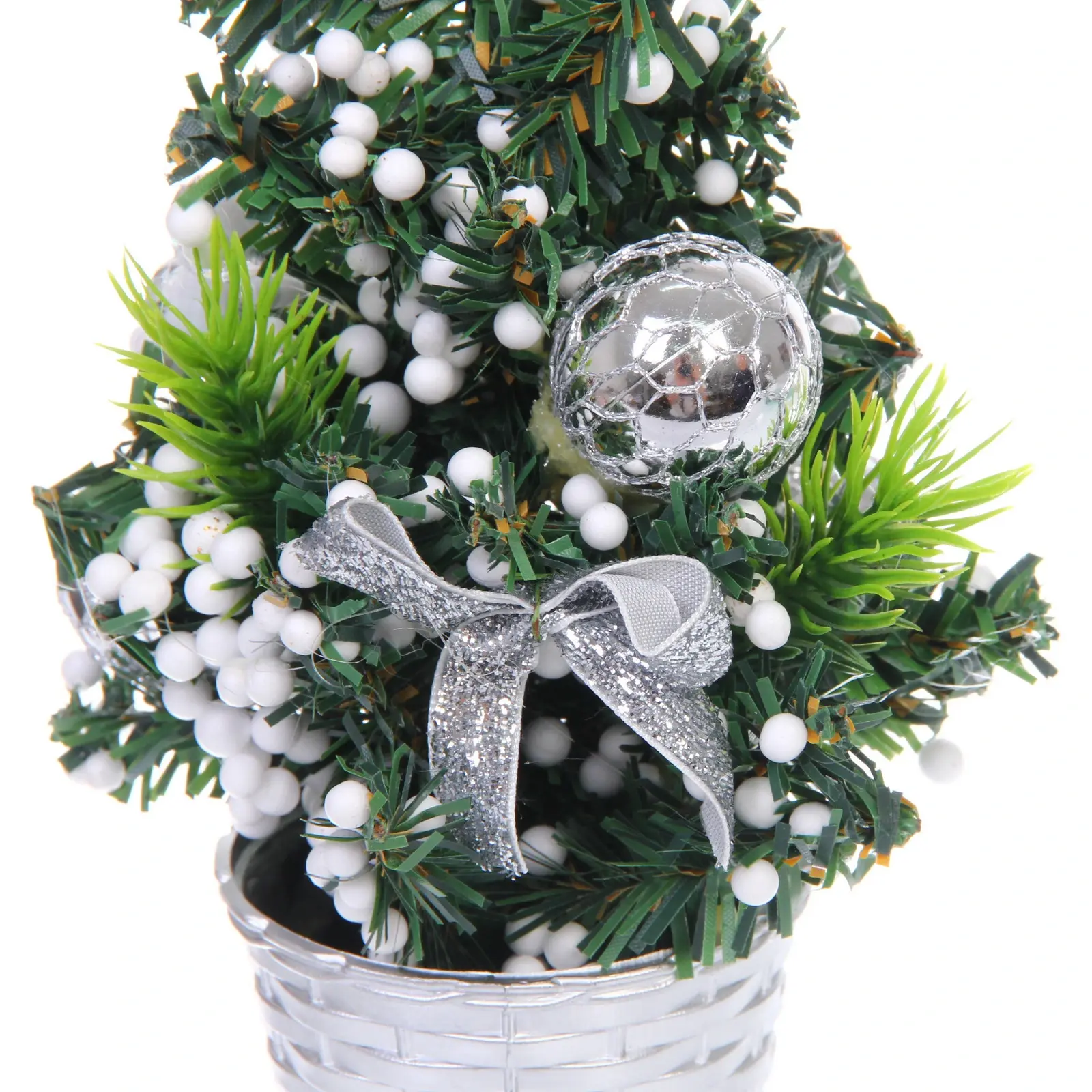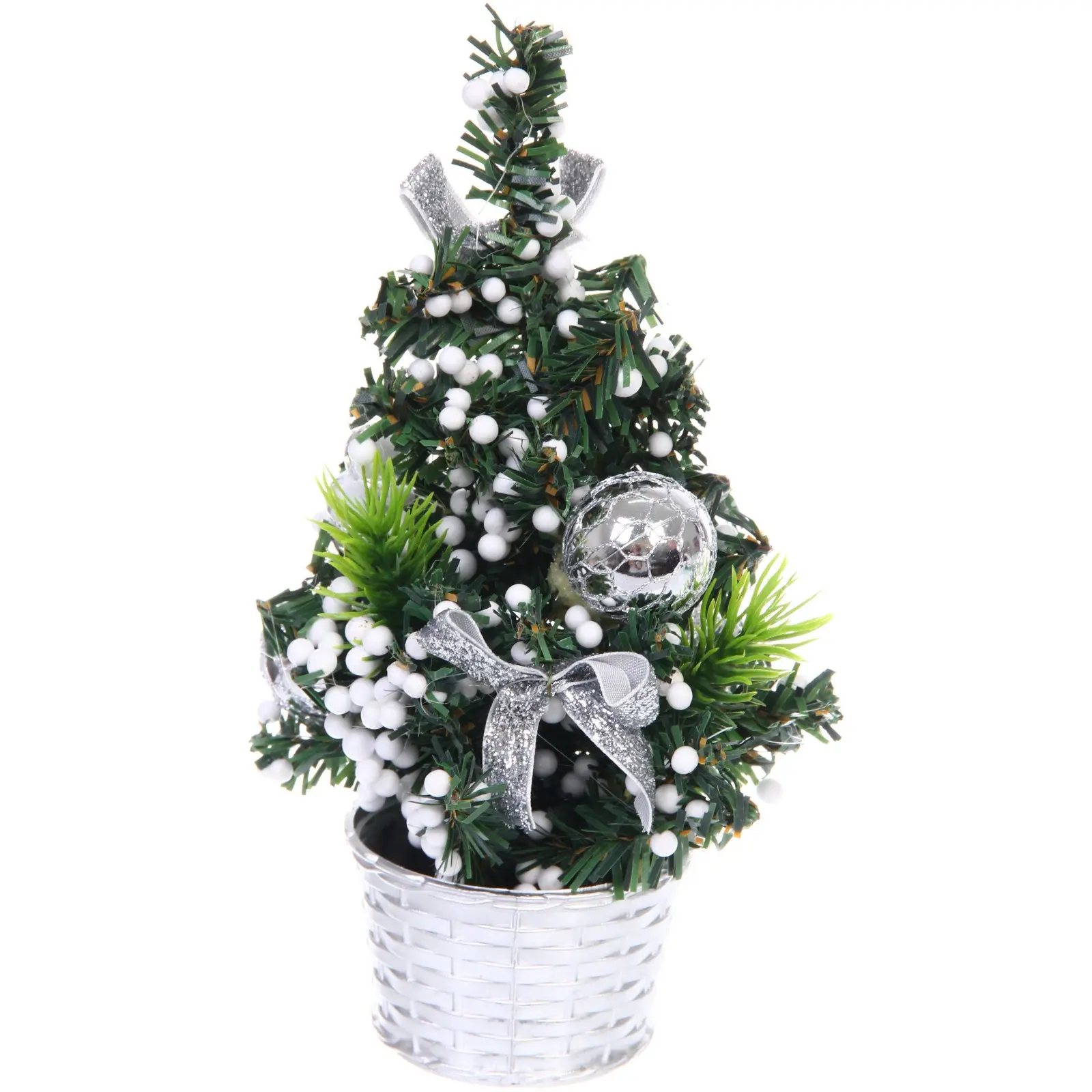 Искусственная елка «Волшебная красавица» в горшке, 20 см, серебристый декор, металл/ПВХ