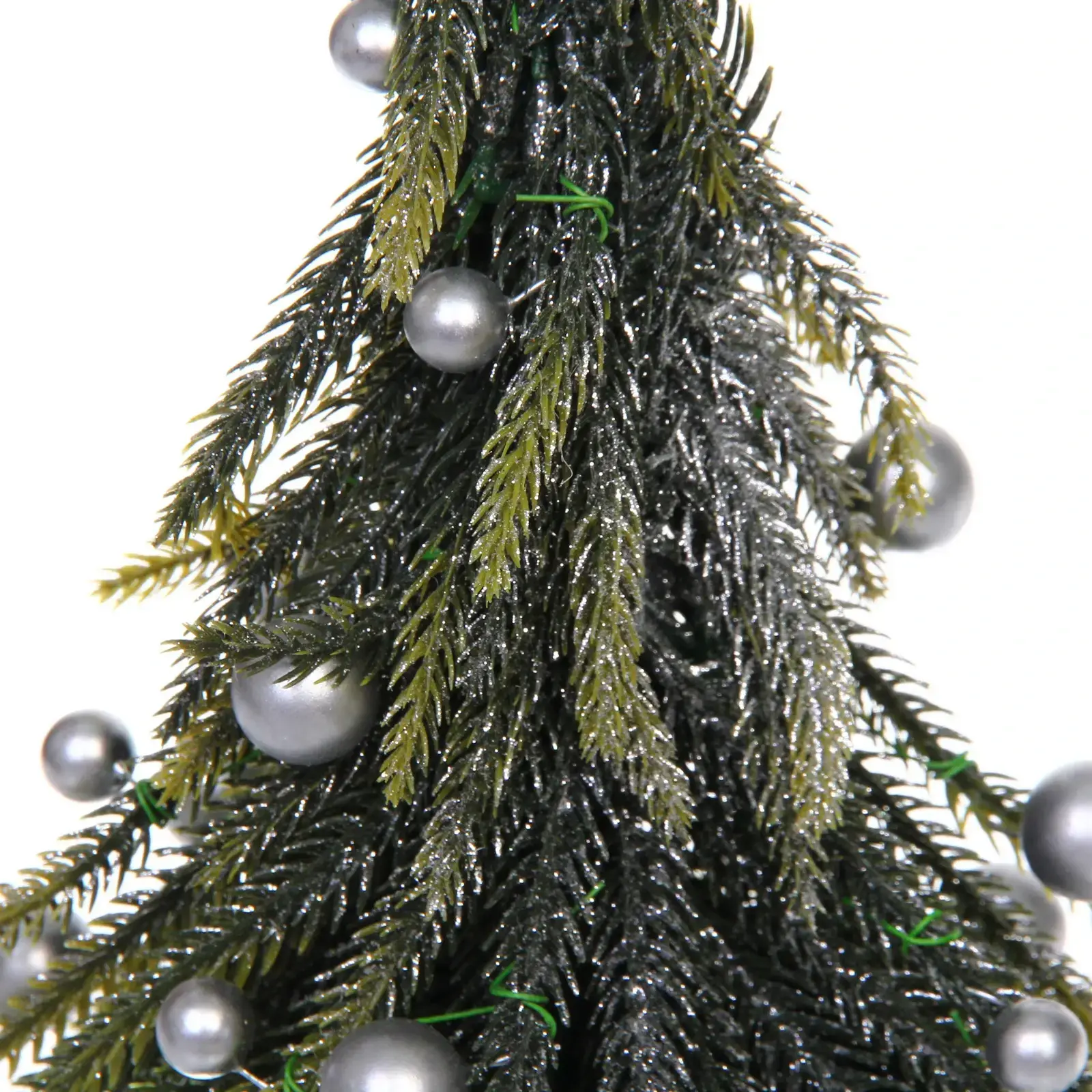 Искусственная ель сохраняет свой первоначальный вид год за годом, не осыпается и не требует особого ухода. Серебряные шары, украшающие ветви, добавляют элегантности и блеска вашему новогоднему декору.