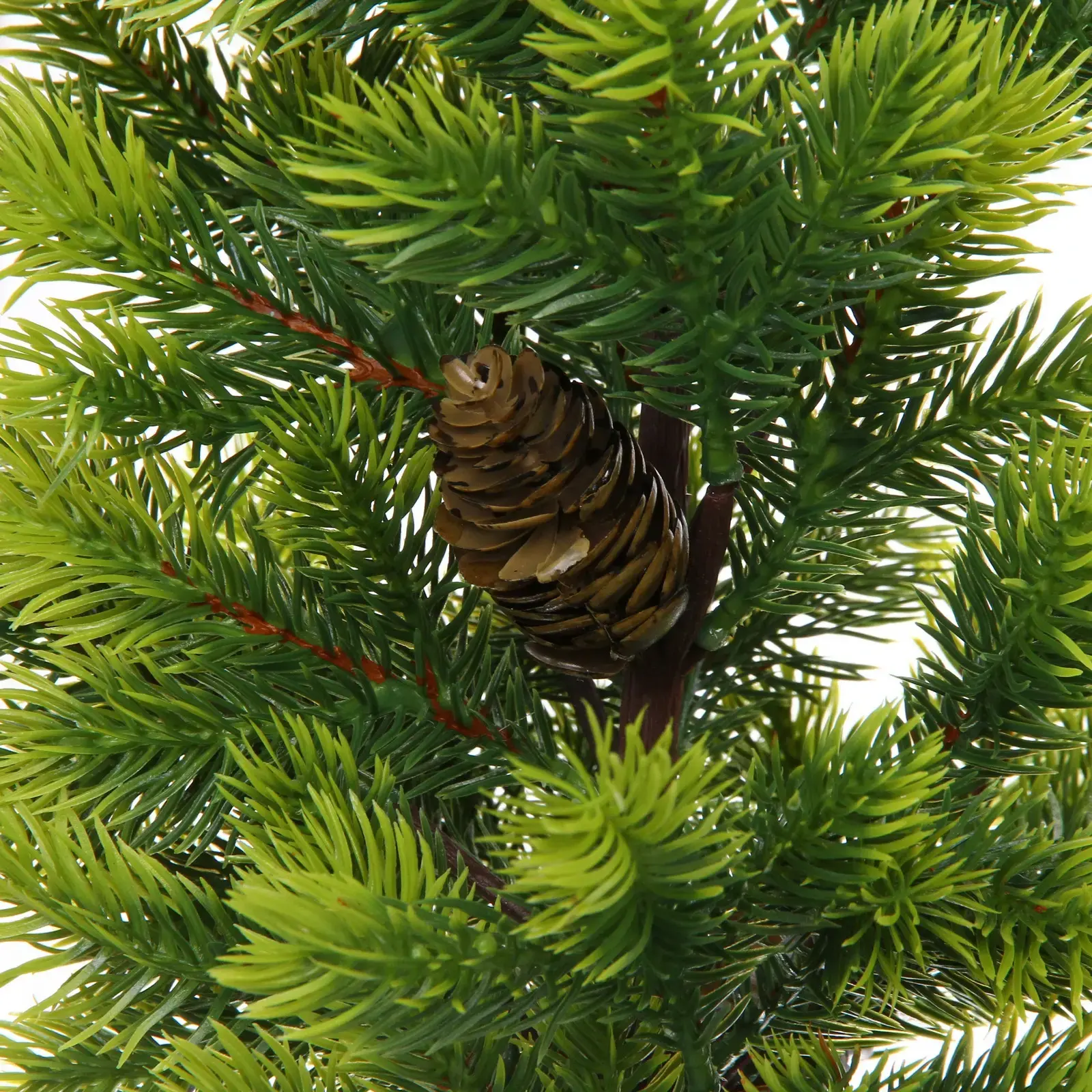 Эта искусственная ель прекрасно подойдет для небольших помещений, офисных столов или в качестве дополнительного новогоднего декора. Декоративные шишки на ветвях создают атмосферу настоящего леса.