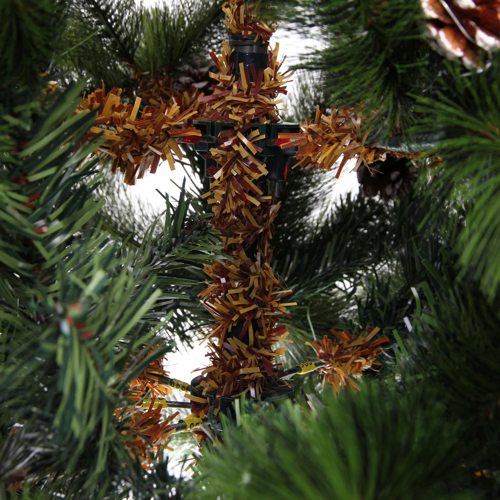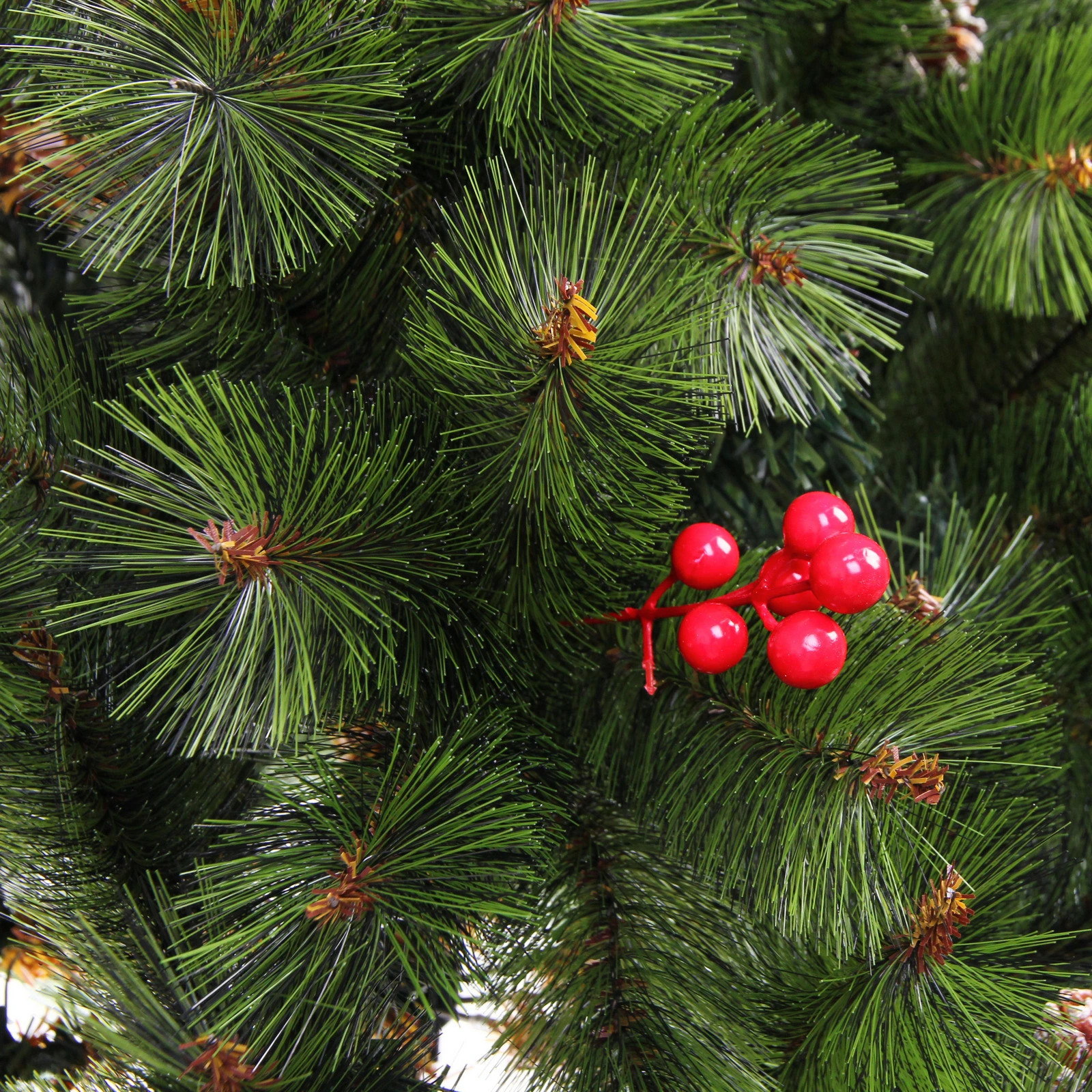 Пышная и нарядная елка высотой 240 см станет главным украшением вашего дома в праздничный сезон. Благодаря продуманному декору из шишек и ягод, она создает ощущение настоящего зимнего леса.