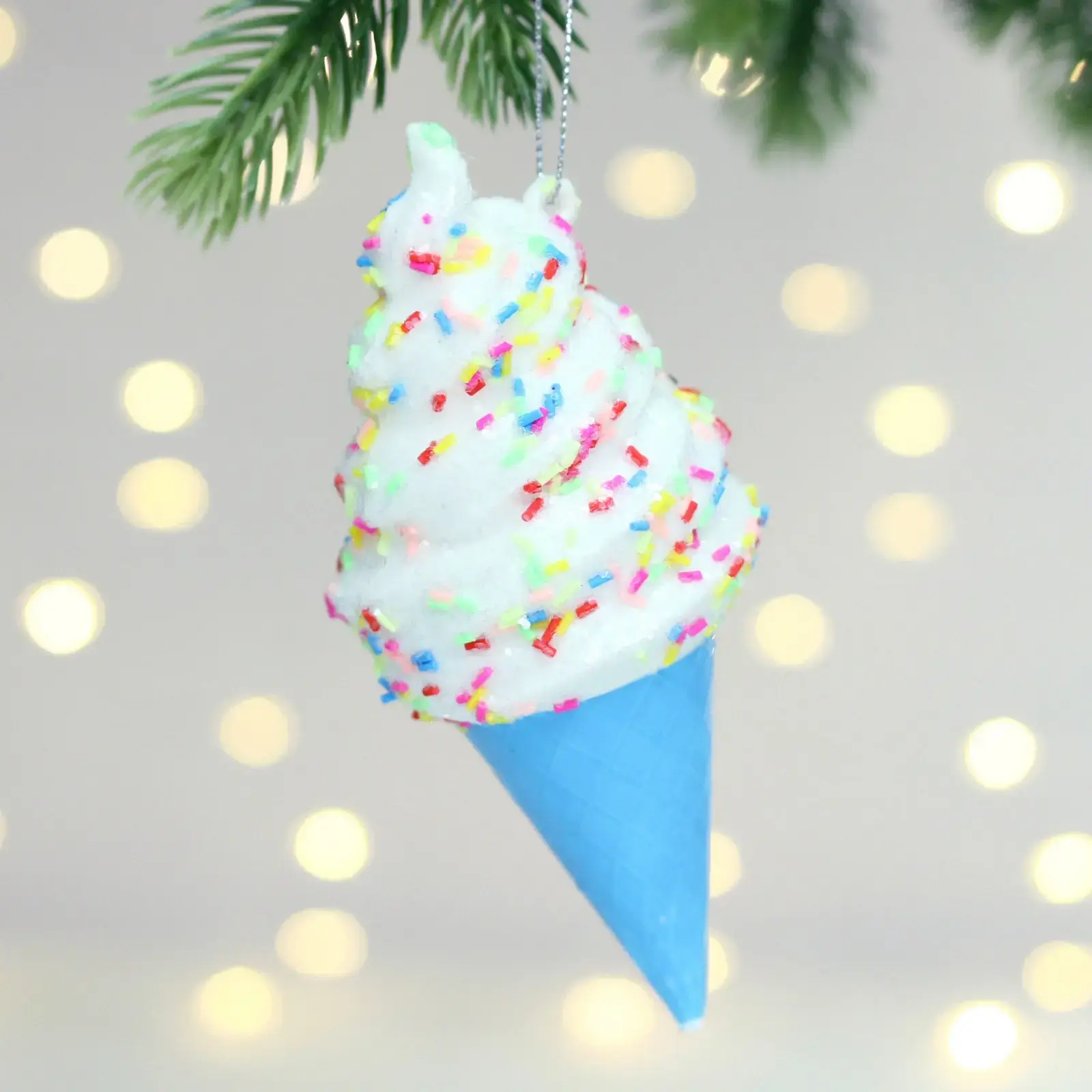 Елочная игрушка «Мороженка» 6*6*14 см, Голубой, пластик, для елки и декорирования