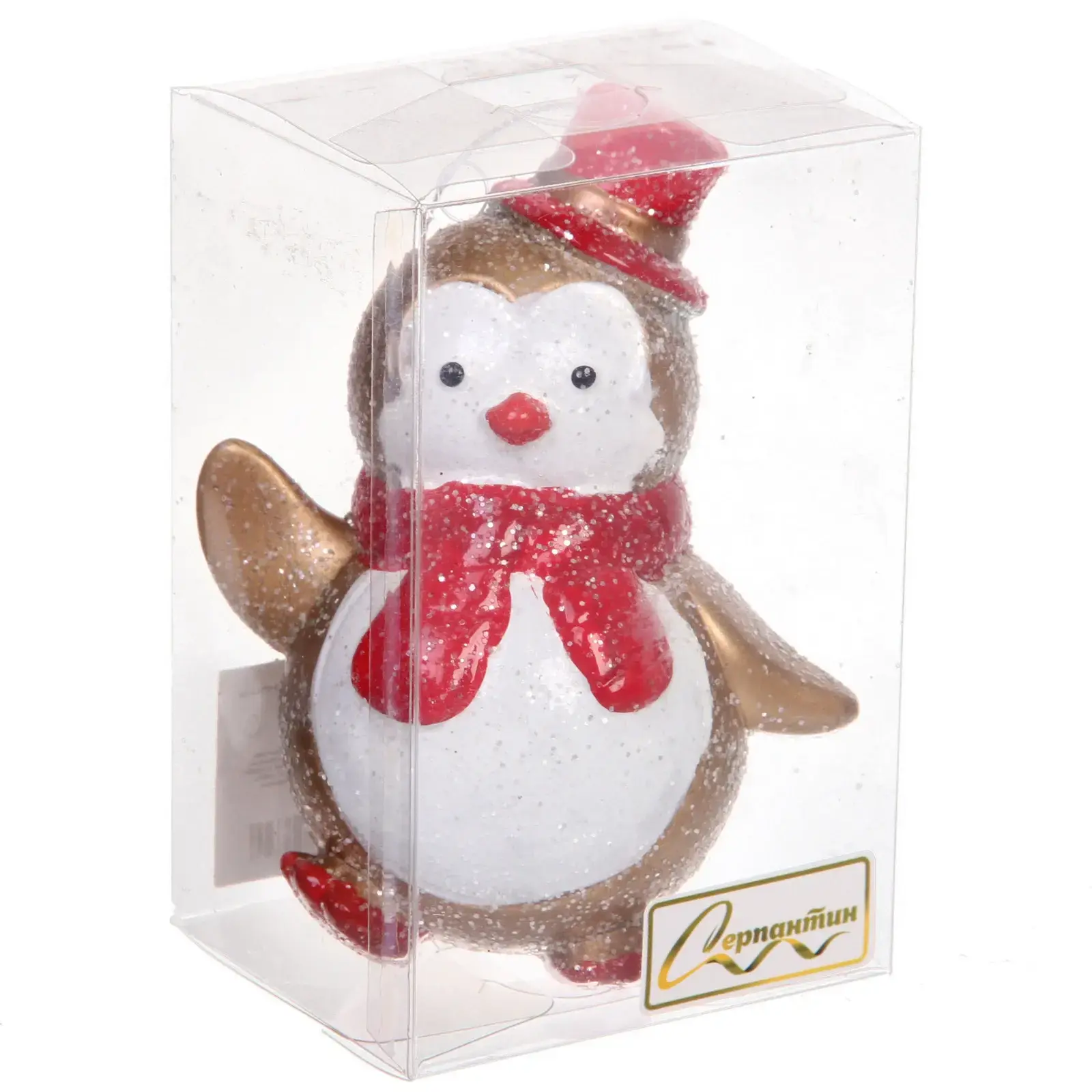 Размеры игрушки составляют 8,5 см в высоту, 6 см в ширину и 10,5 см в глубину. Она выполнена из прочного пластика, что гарантирует долговечность и сохранность формы. Пингвин одет в красный шарф и шляпу, что придает ему особый новогодний шарм. Упаковка защищает игрушку от повреждений, позволяя сохранить ее в идеальном состоянии до самого праздника.