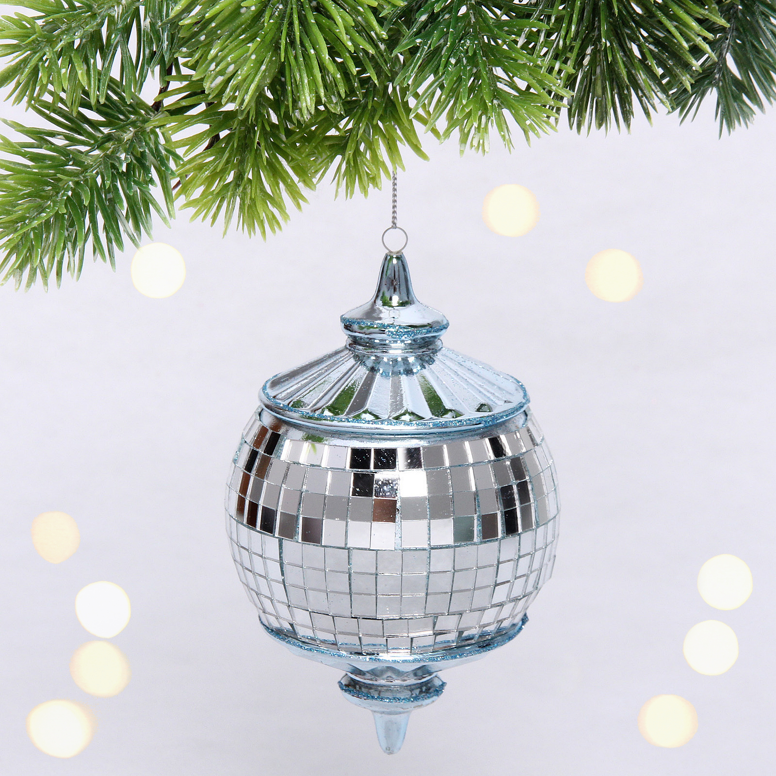 Эта уникальная елочная игрушка станет ярким акцентом вашего новогоднего декора. С ее помощью вы сможете добавить нотку веселья и уюта в ваш дом. Игрушка выполнена в форме диско-шара, что придаст вашему интерьеру оригинальность и стиль. Благодаря своему голубому цвету и зеркальной поверхности, она будет прекрасно сочетаться с другими украшениями на вашей елке.