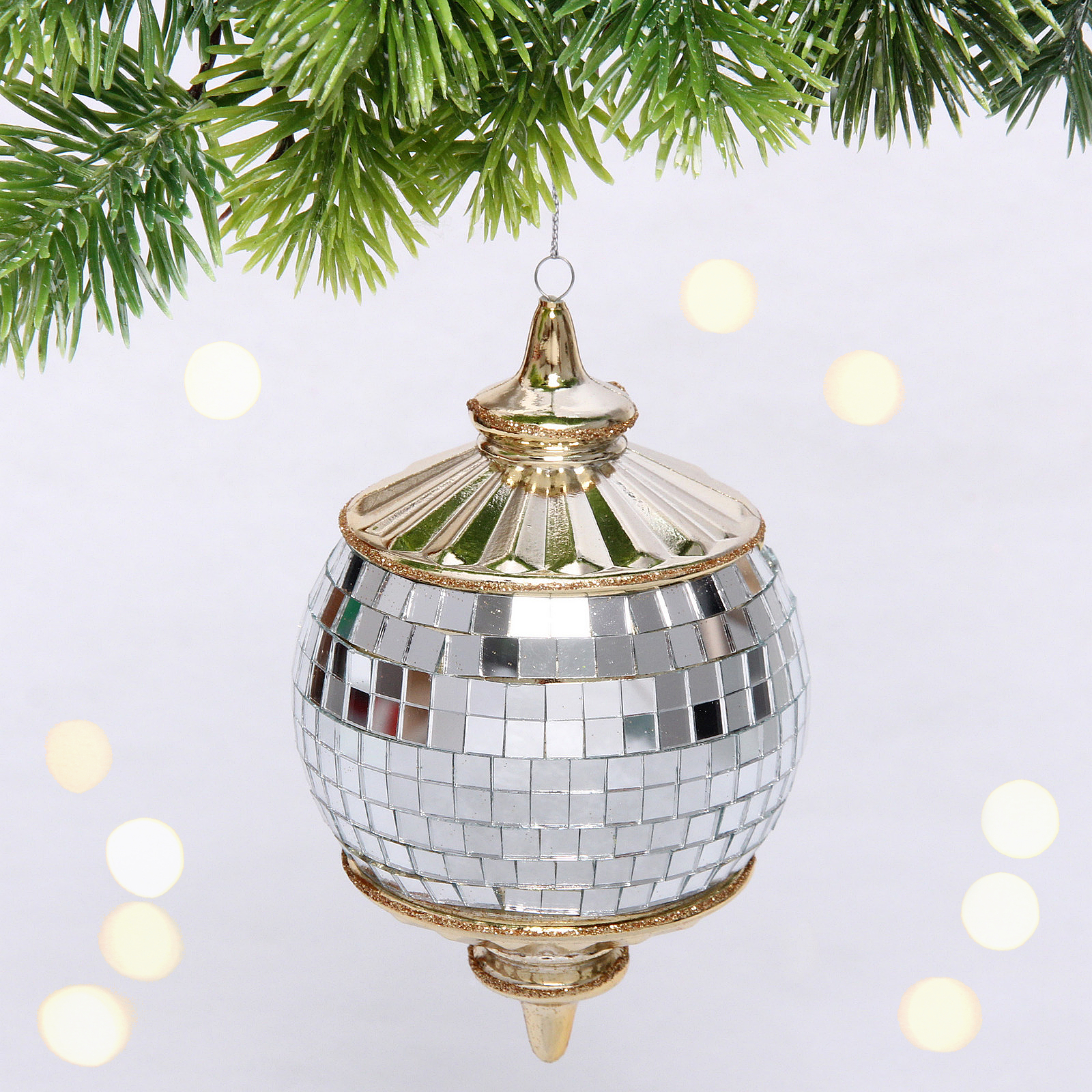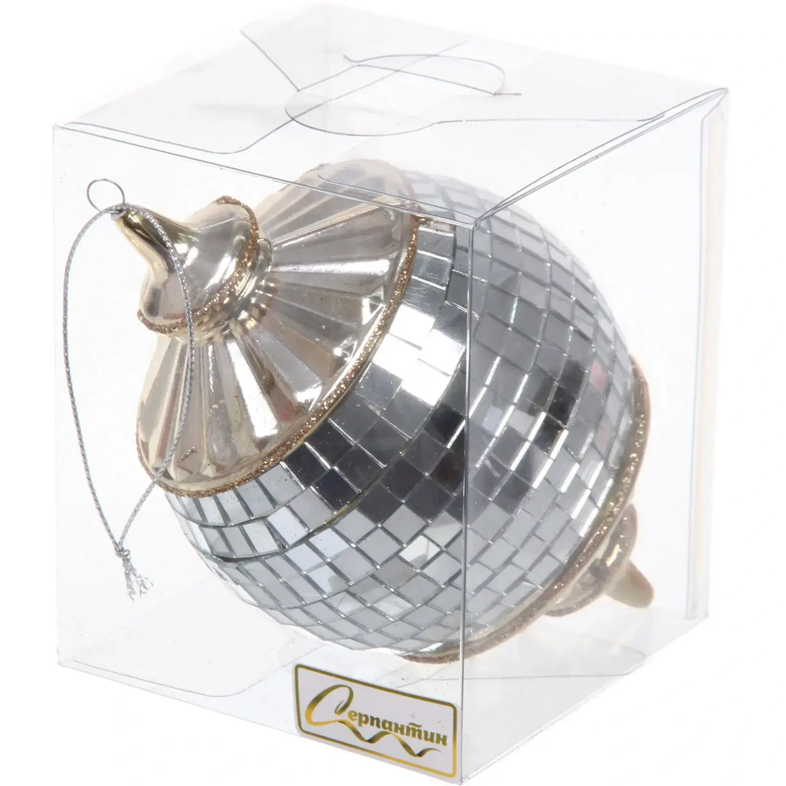 Эта уникальная елочная игрушка станет ярким акцентом вашего новогоднего декора. С ее помощью вы сможете создать атмосферу уюта и радости, которая будет радовать вас и ваших близких на протяжении всего праздника. Зеркальная поверхность с маленькими квадратными плитками отражает свет, создавая эффект мерцания и добавляя волшебства в ваш интерьер.