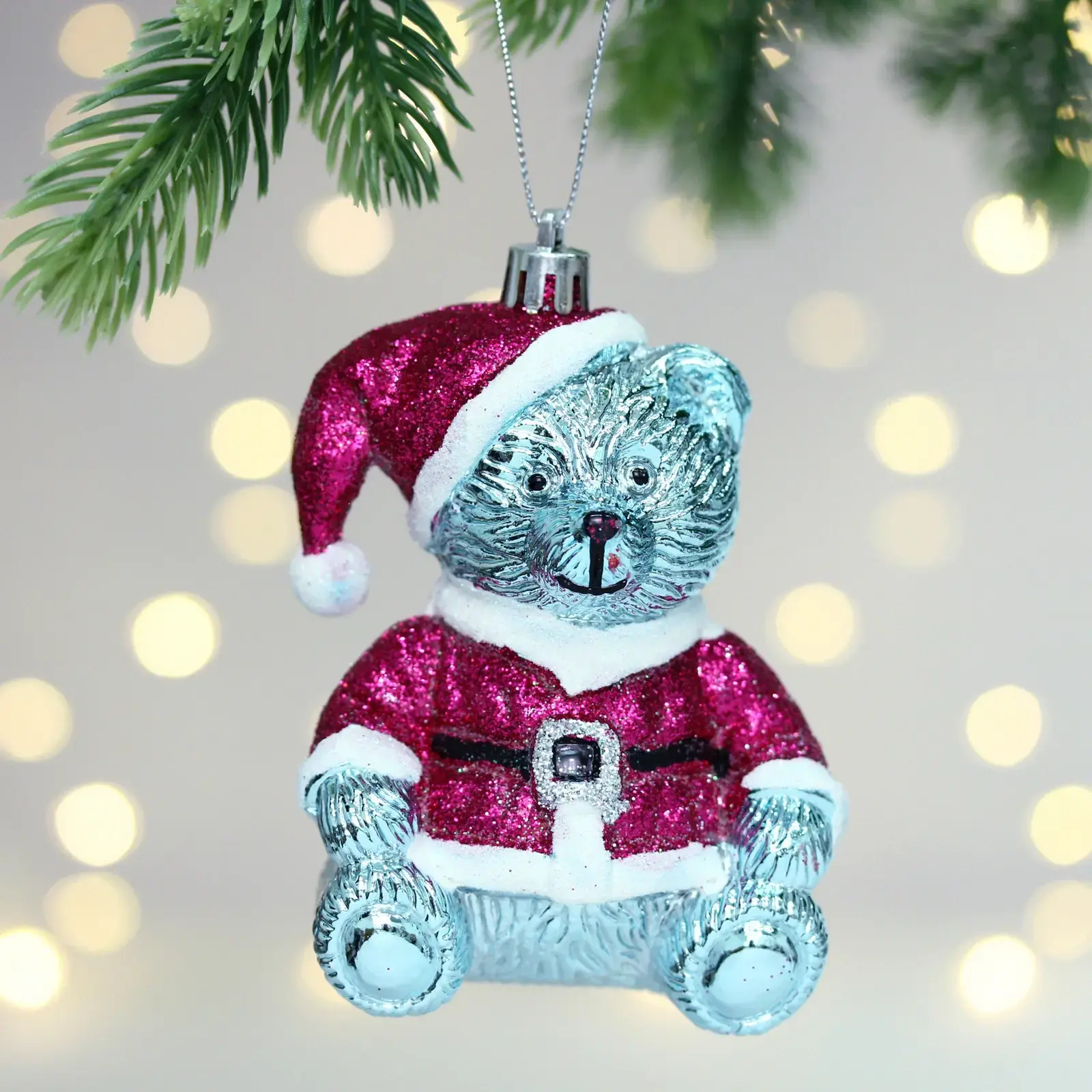 Погрузитесь в атмосферу праздника с этой очаровательной новогодней игрушкой в форме медведя. Эта яркая и блестящая игрушка станет ярким акцентом вашего праздничного декора и создаст уютную атмосферу в доме. Изготовлена из качественного пластика, она безопасна для использования в помещении и легко крепится благодаря металлическому крючку.