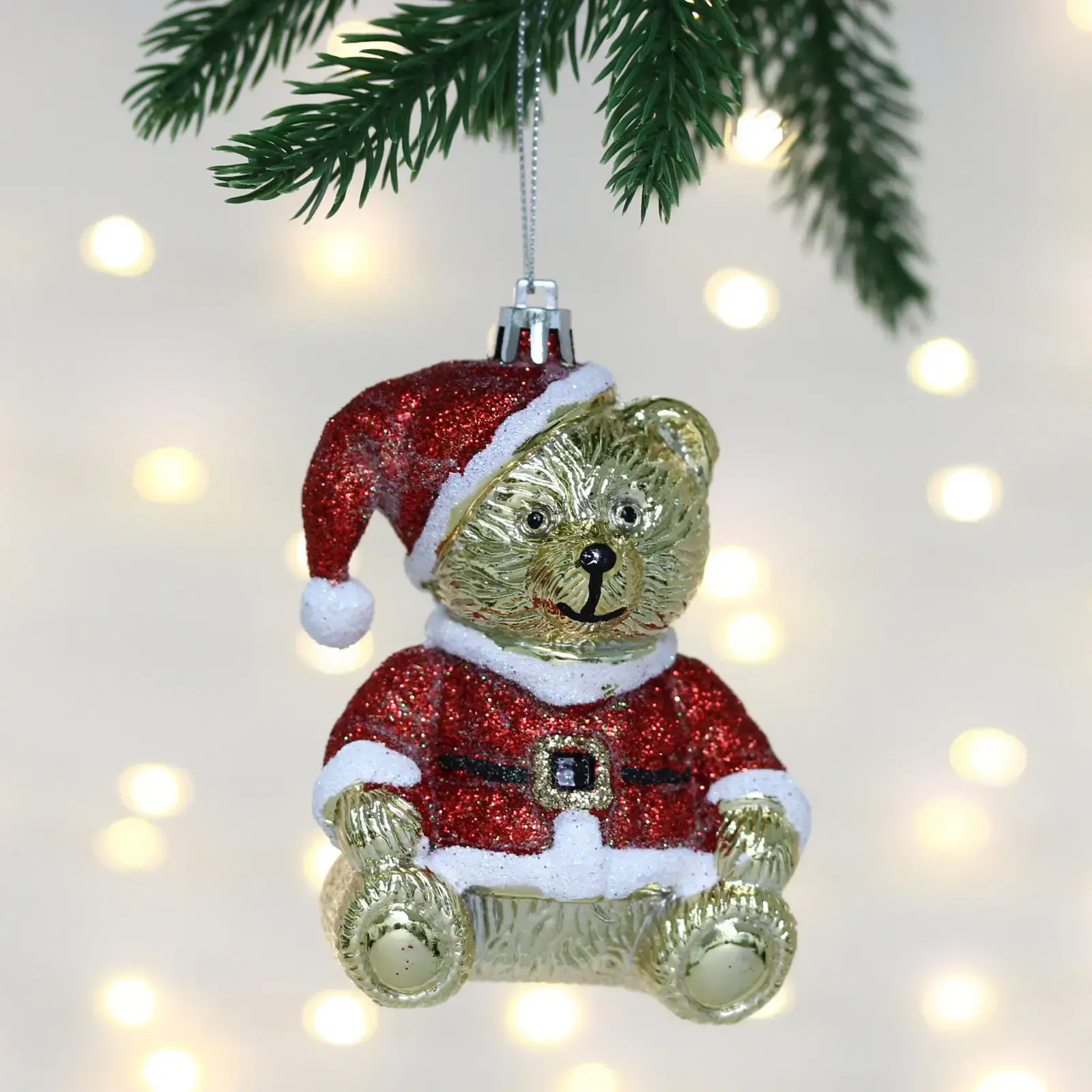 Почему стоит выбрать именно эту игрушку? Во-первых, она выполнена из качественного пластика, что обеспечивает долговечность и безопасность. Во-вторых, ее уникальный дизайн в виде медвежонка в костюме Санта-Клауса с красной шапочкой и белыми деталями делает ее не только красивой, но и оригинальной. Блестящая поверхность игрушки добавляет ей праздничного блеска, а металлическая петелька позволяет легко подвешивать ее на елку.