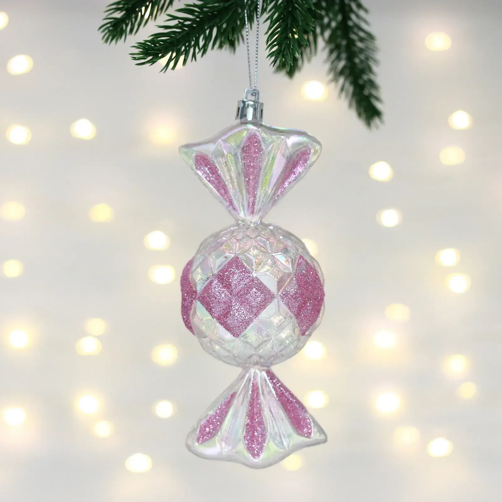 Елочная игрушка «Сладкая конфетка» 6,3*6,3*15 см, Розовый, пластик, для елки и декорирования