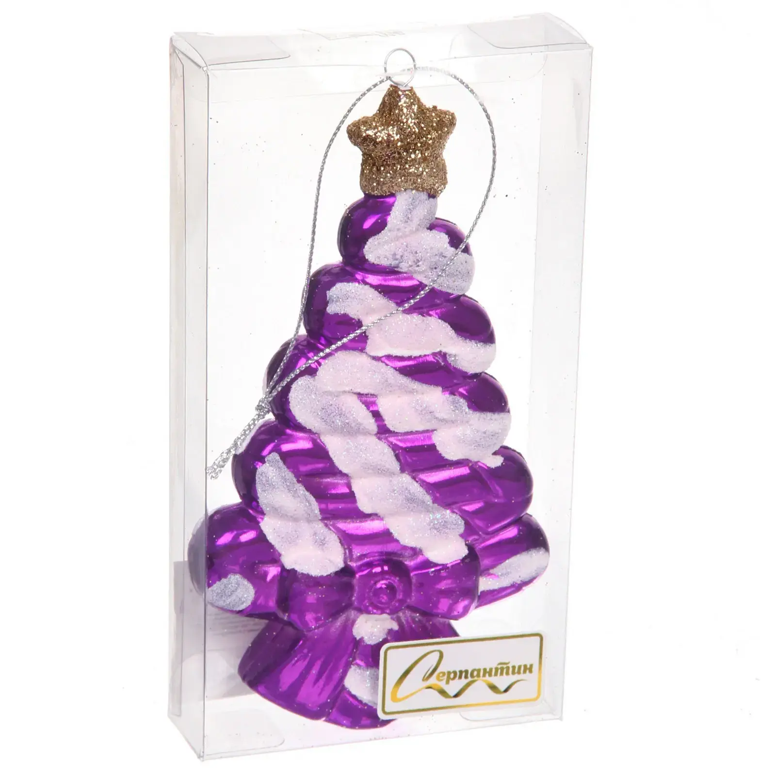 Размеры игрушки составляют 7,5 см в ширину, 1,5 см в глубину и 14 см в высоту. Она украшена светло-фиолетовым бантиком, который добавляет ей изысканности. Эта игрушка станет отличным подарком для друзей и близких, а также прекрасным дополнением к вашей коллекции новогодних украшений.