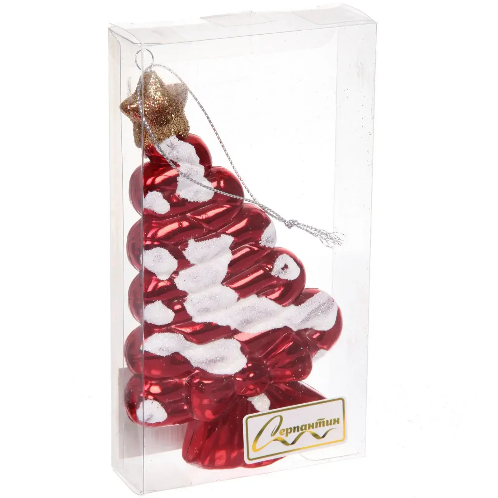 Эта яркая и стильная елочная игрушка станет идеальным украшением для вашей новогодней елки. С ее помощью вы сможете добавить в интерьер уют и праздничное настроение. Красный цвет с белыми элементами, имитирующими снег, создает эффект зимней сказки, а золотая звезда на верхушке придаёт изделию особую изысканность.