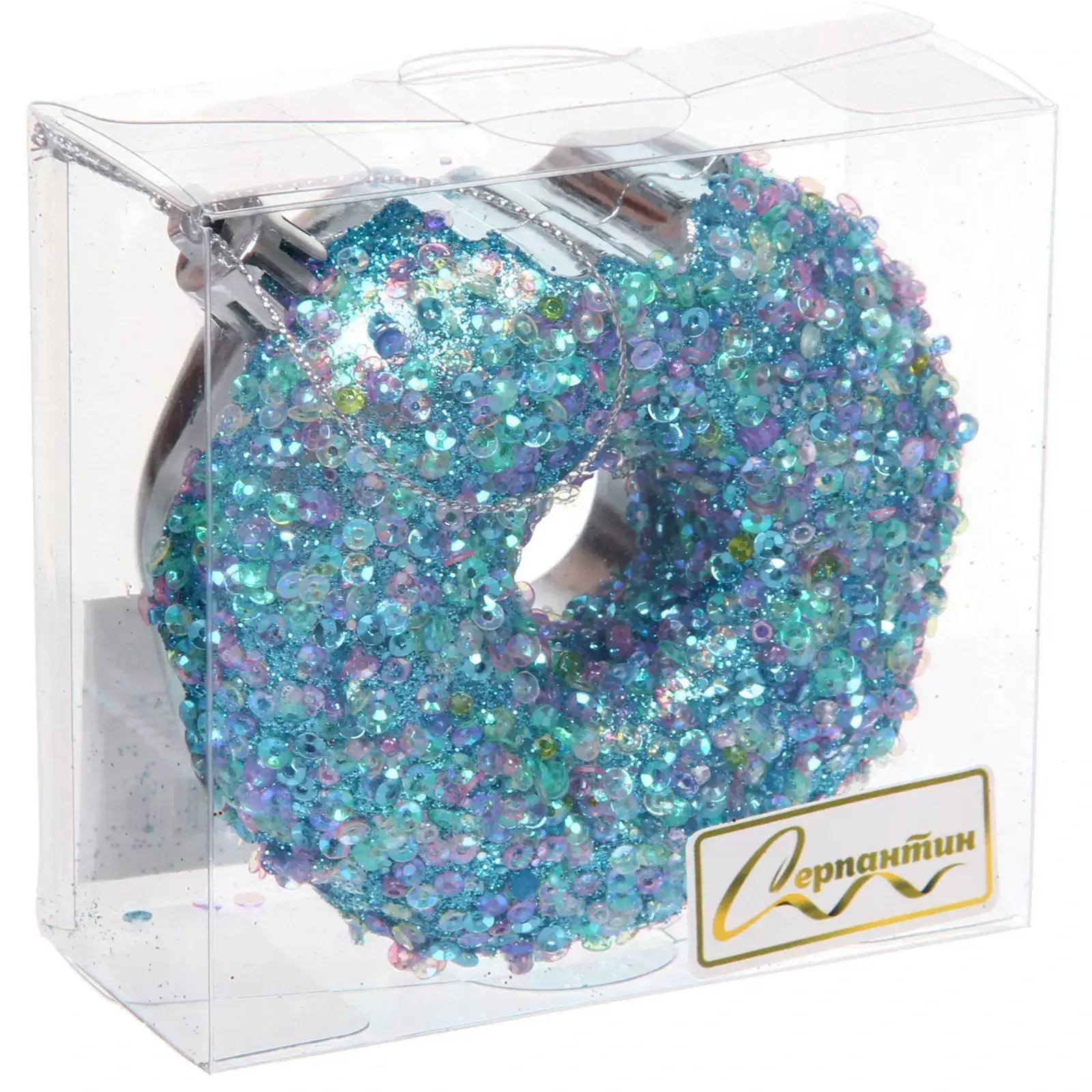 Игрушка украшена глиттером трех оттенков – голубым, фиолетовым и зеленым, что создает эффект мерцания при любом освещении. Удобная металлическая петелька позволяет легко повесить украшение на любую ветку.