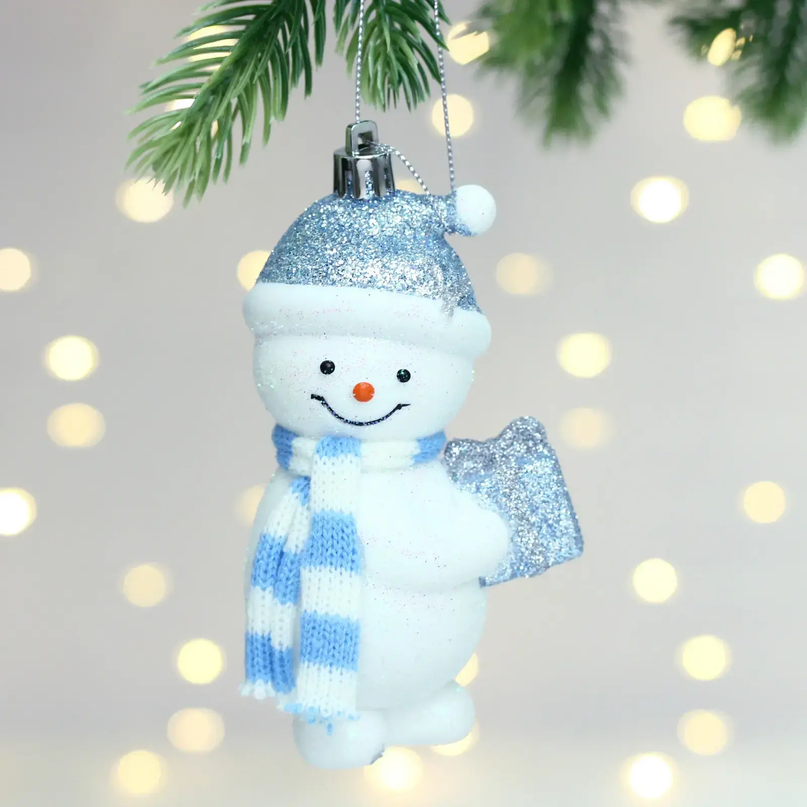 Игрушка предназначена для развешивания на елке или в любом другом месте, где вы хотите создать праздничное настроение. Она идеально подходит для семейных праздников, корпоративов и других мероприятий, связанных с Новым годом. Снеговик выполнен из прочного пластика, что обеспечивает его долговечность и устойчивость к повреждениям.