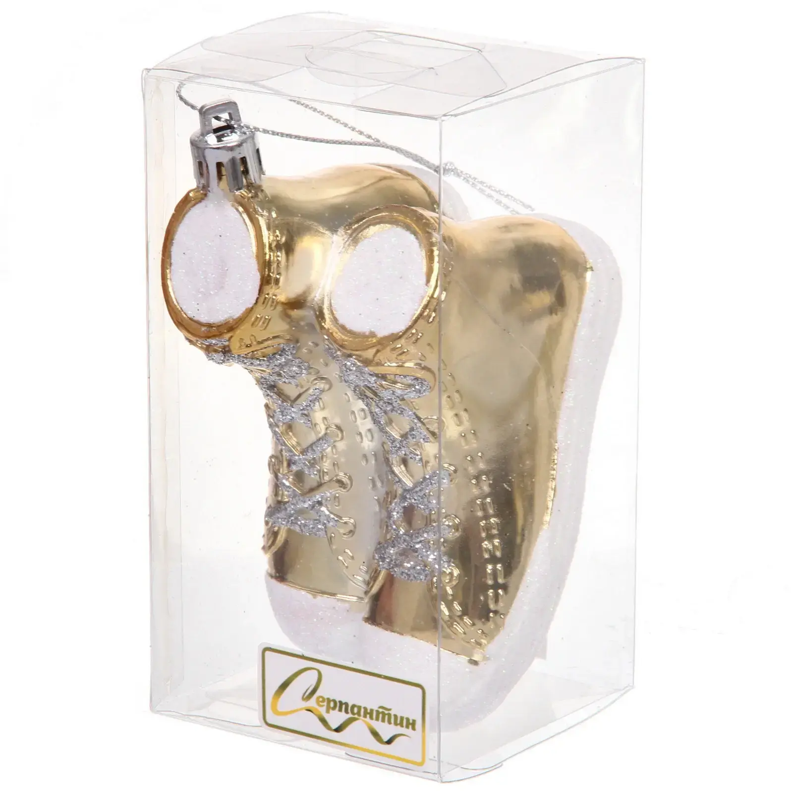 Игрушка поставляется в прозрачной защитной упаковке, что обеспечивает сохранность при транспортировке и позволяет рассмотреть детали дизайна. Серебристые акценты на шнуровке добавляют объем и реалистичность форме кроссовок. Невесомый вес (всего 45 г) предотвращает провисание веток.