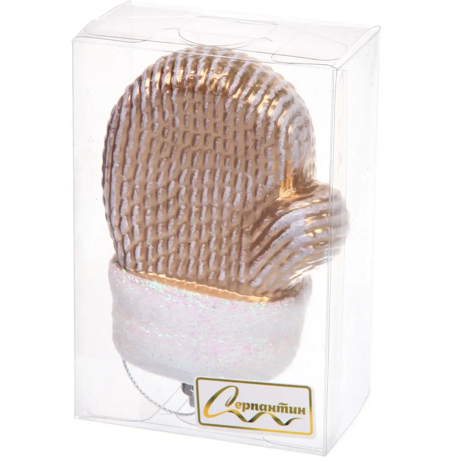 Игрушка выполнена в классическом новогоднем стиле: золотистое основание с текстурой вязаной варежки дополнено белым верхом с мерцающими блестками. Прозрачная упаковка позволяет легко оценить качество изделия перед покупкой.