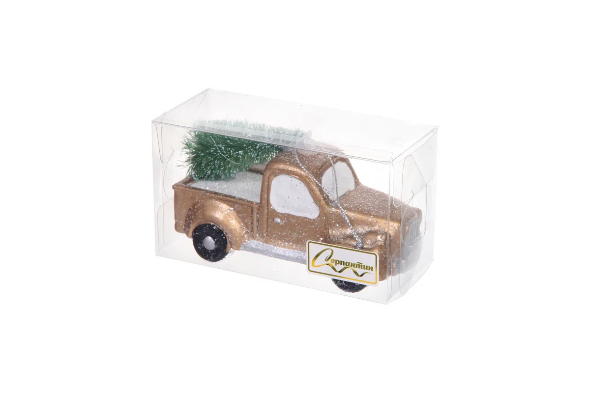 Подарите своей ёлке уникальную историю путешествия сквозь зимнюю сказку с игрушкой «зимнее путешествие». Яркая золотая кузовная модель автомобиля, покрытая блёстками, вместе с миниатюрной зелёной ёлкой создаёт ощущение настоящего праздника, привнося уют и радость в любой интерьер.