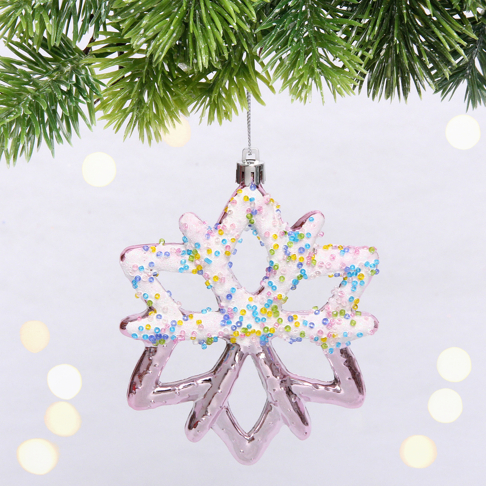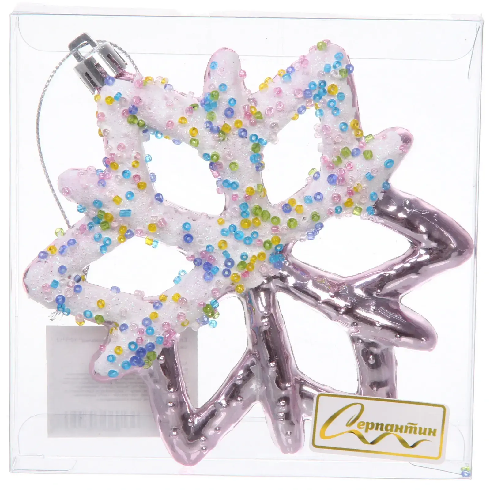 Игрушка имеет размеры 10х1х12 см и выполнена в розовом цвете с блестящей поверхностью. Декорирована цветными блестками, что придает ей особый шарм. Она станет отличным дополнением к вашему новогоднему декору и создаст атмосферу праздника в вашем доме.