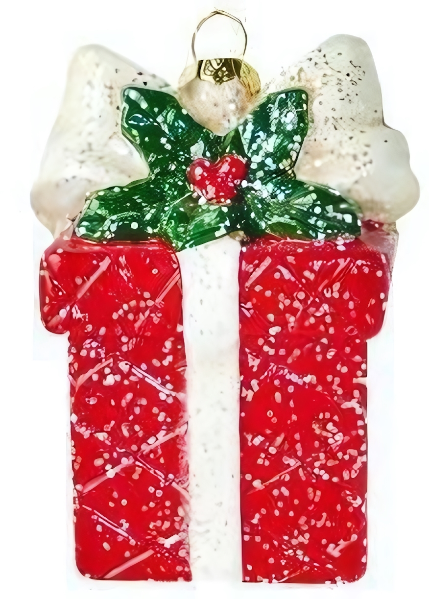 Елочное украшение 'Подарок' изготовлено из качественного пластика и имеет размер 9,5 см, что делает его легким и удобным для размещения. Яркие цвета — красный, белый и зеленый, а также аккуратный дизайн с блестками и элементами растительности сделают вашу елку по-настоящему уникальной. Его высокая прочность гарантирует долговечность, что позволит вам использовать украшение из года в год!
