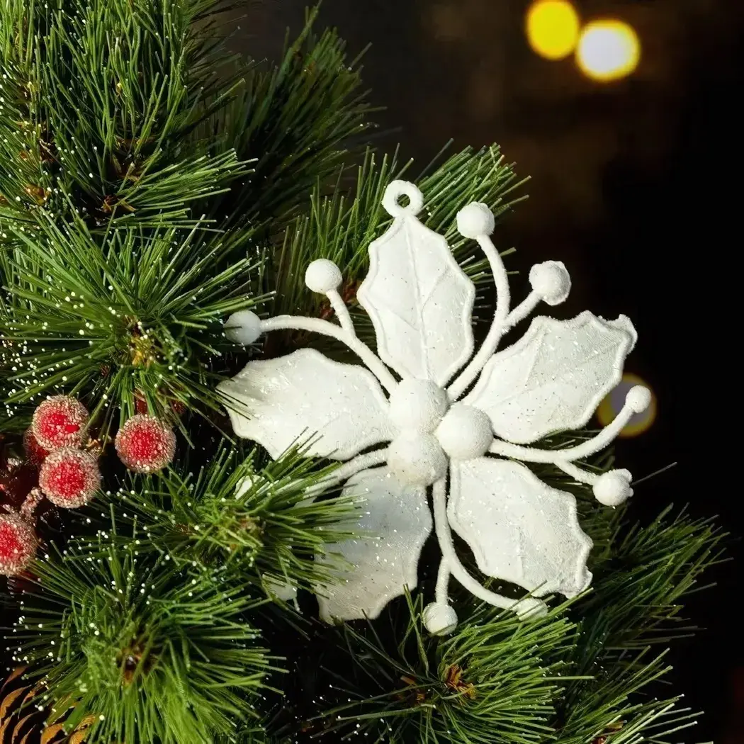 Создайте неповторимую праздничную атмосферу с помощью набора из трех элегантных цветочных украшений. Легкие и прочные элементы декора подарят вашему дому особое очарование зимних праздников.