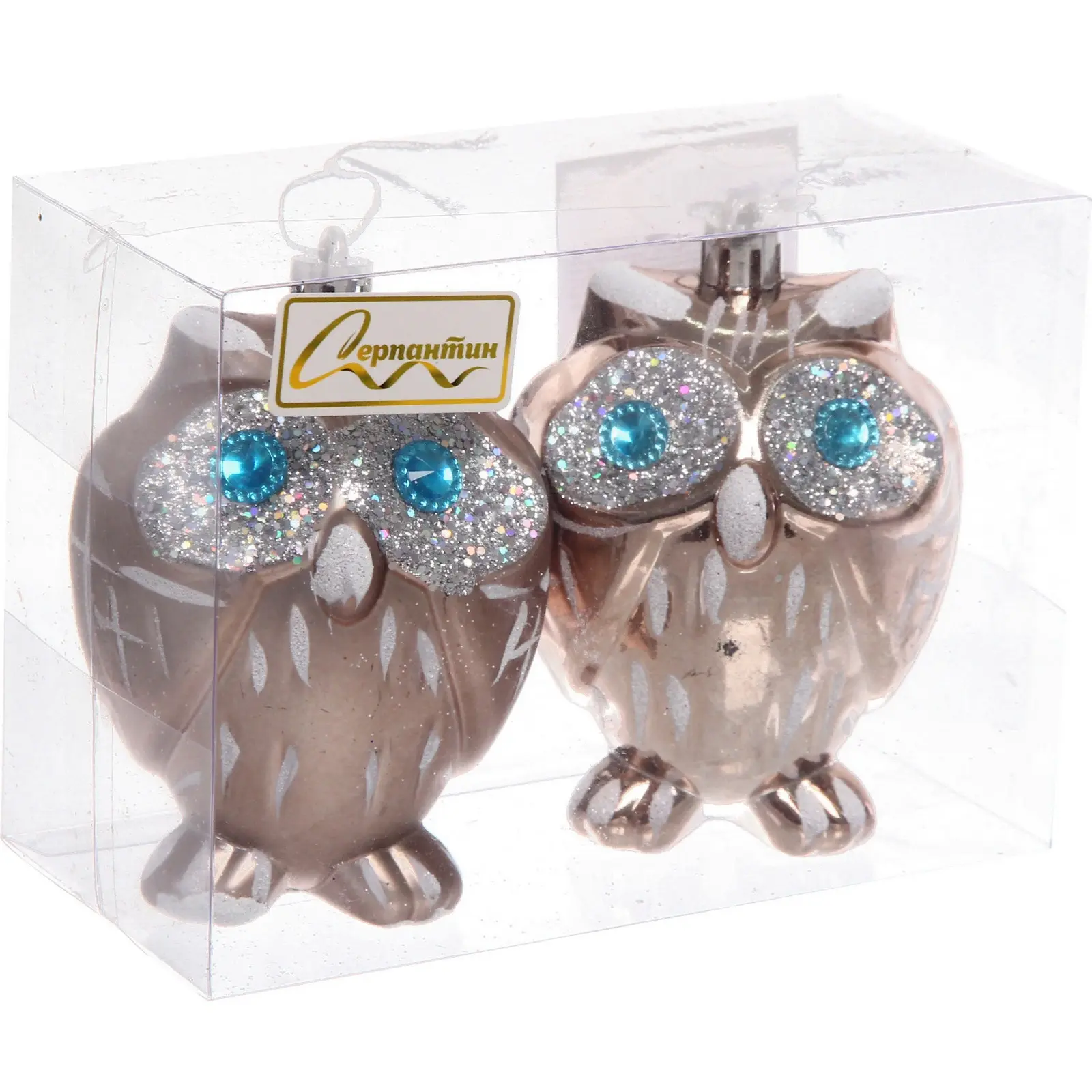 Елочные игрушки «Brilliant Owl» 8 см (набор 2 шт), Шампань, пластик, для елки и декорирования
