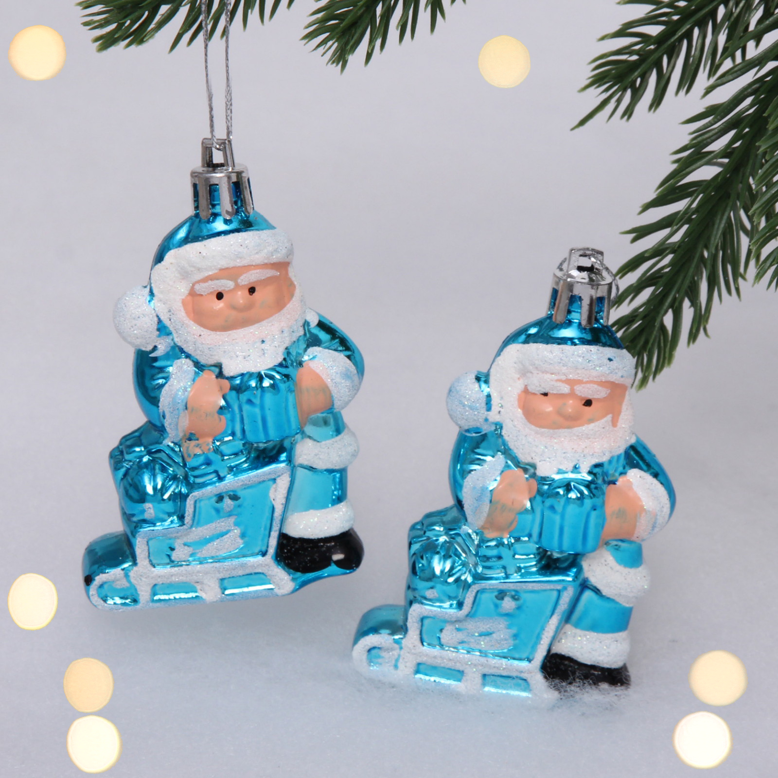 Размер каждой игрушки составляет 6,5 см, что делает их компактными и удобными для размещения на елке. Набор включает в себя две фигурки, каждая из которых изображает Деда Мороза с подарком. Эти игрушки станут отличным подарком для ваших близких или прекрасным дополнением к вашему новогоднему декору.