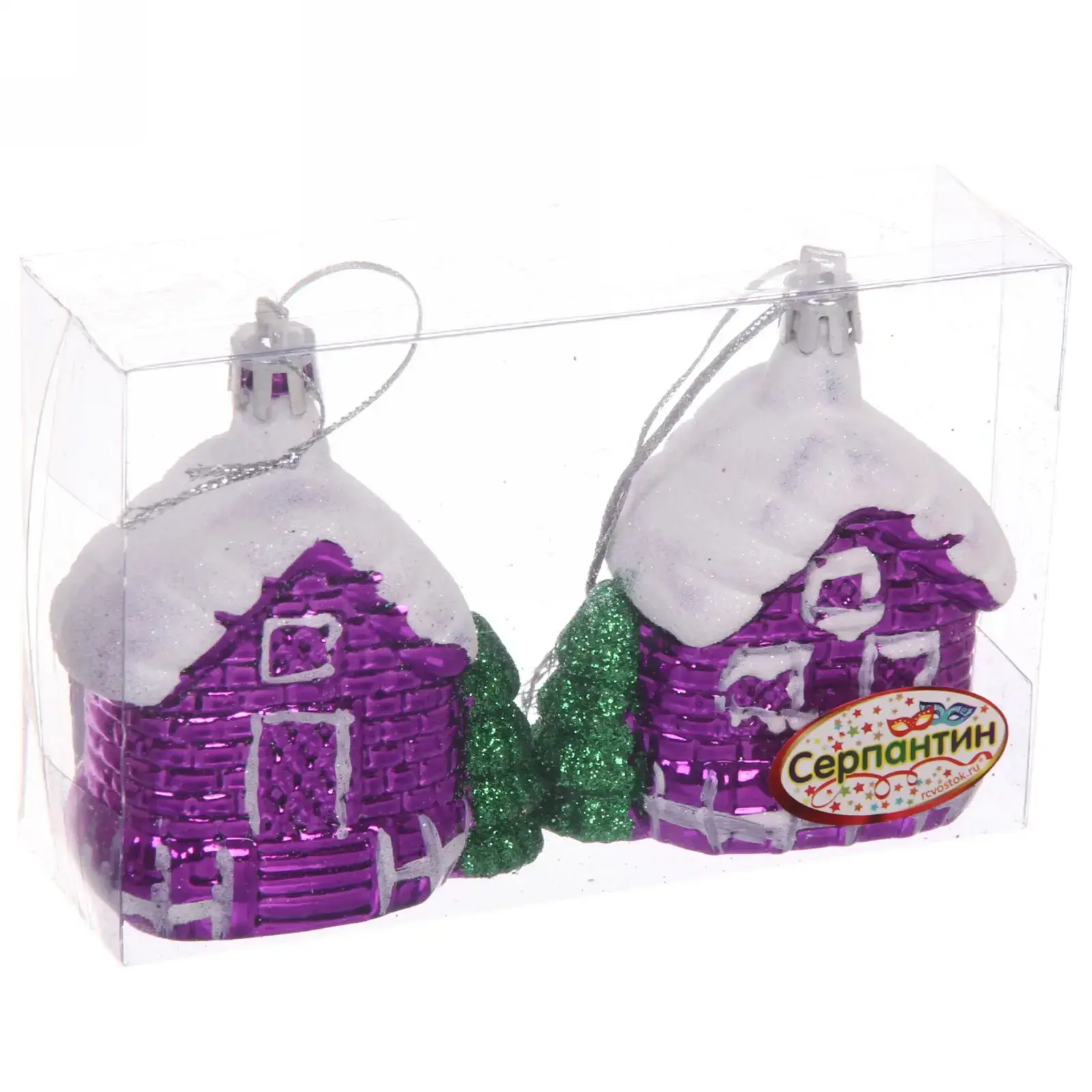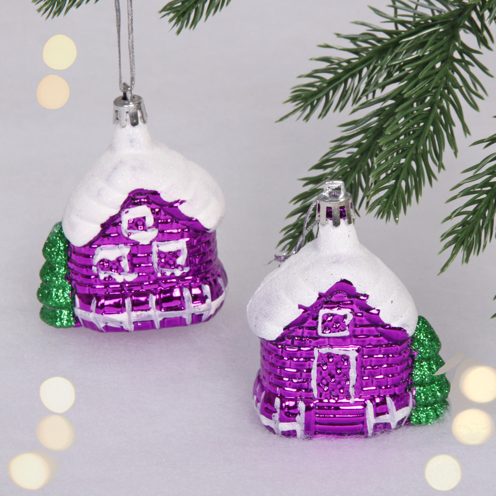 Елочные игрушки «Домик в лесу» 7 см (набор 2 шт), Фиолетовый, пластик, для елки и декорирования