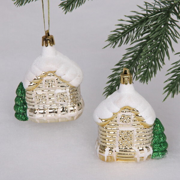 Эти изысканные елочные игрушки в форме домиков добавят уют и атмосферу праздника в ваш дом. Золотистый цвет и белая крыша, покрытая искусственным снегом, создают эффект настоящей зимней сказки. Каждая игрушка имеет петельку для удобного подвешивания, что делает их идеальными для украшения вашей новогодней елки.