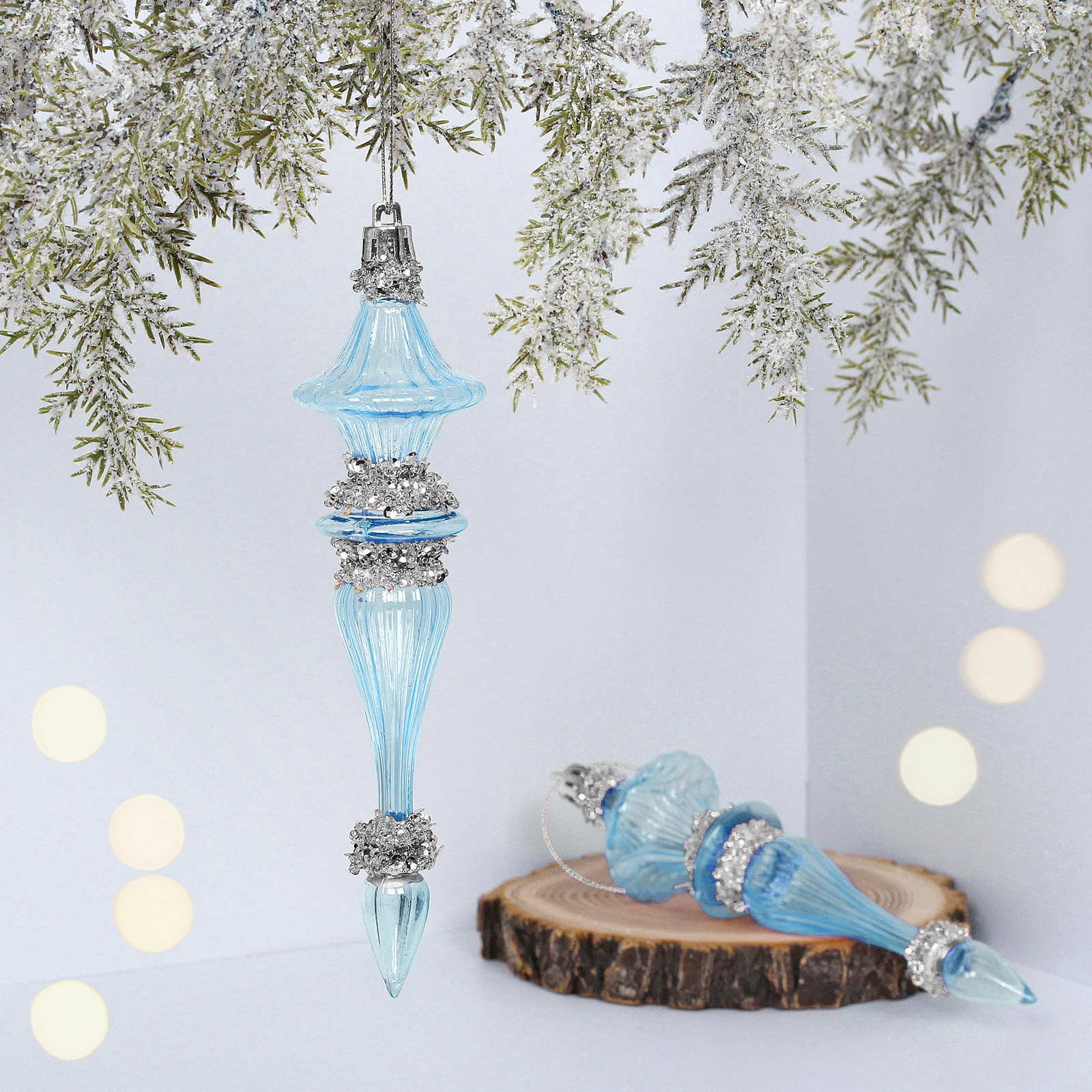 Погрузитесь в атмосферу волшебного праздника с набором из двух изящных елочных игрушек «Изящная нежность». Их нежный голубой оттенок и блестящая бисерная отделка создадут ощущение лёгкости и изысканности, привнося в интерьер нотку спокойствия.