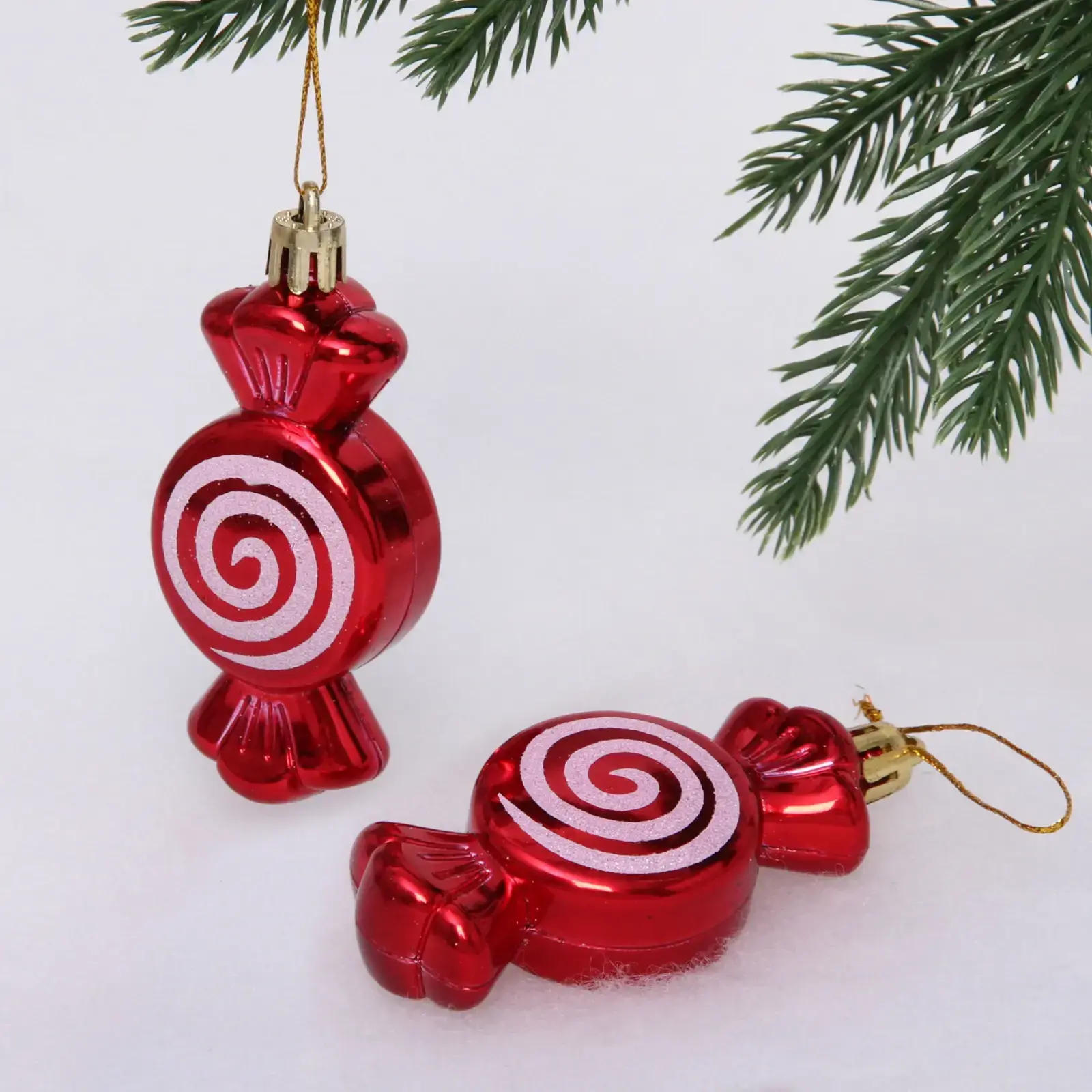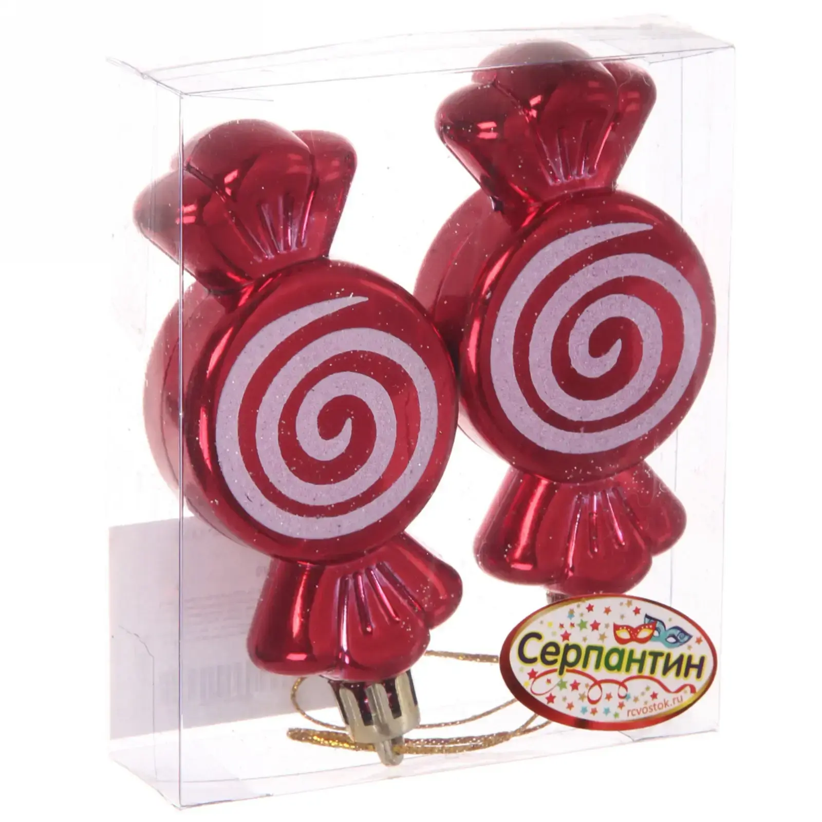 Елочные игрушки «Карамельки» 7,5 см (набор 2 шт), Красный, пластик, для елки и декорирования