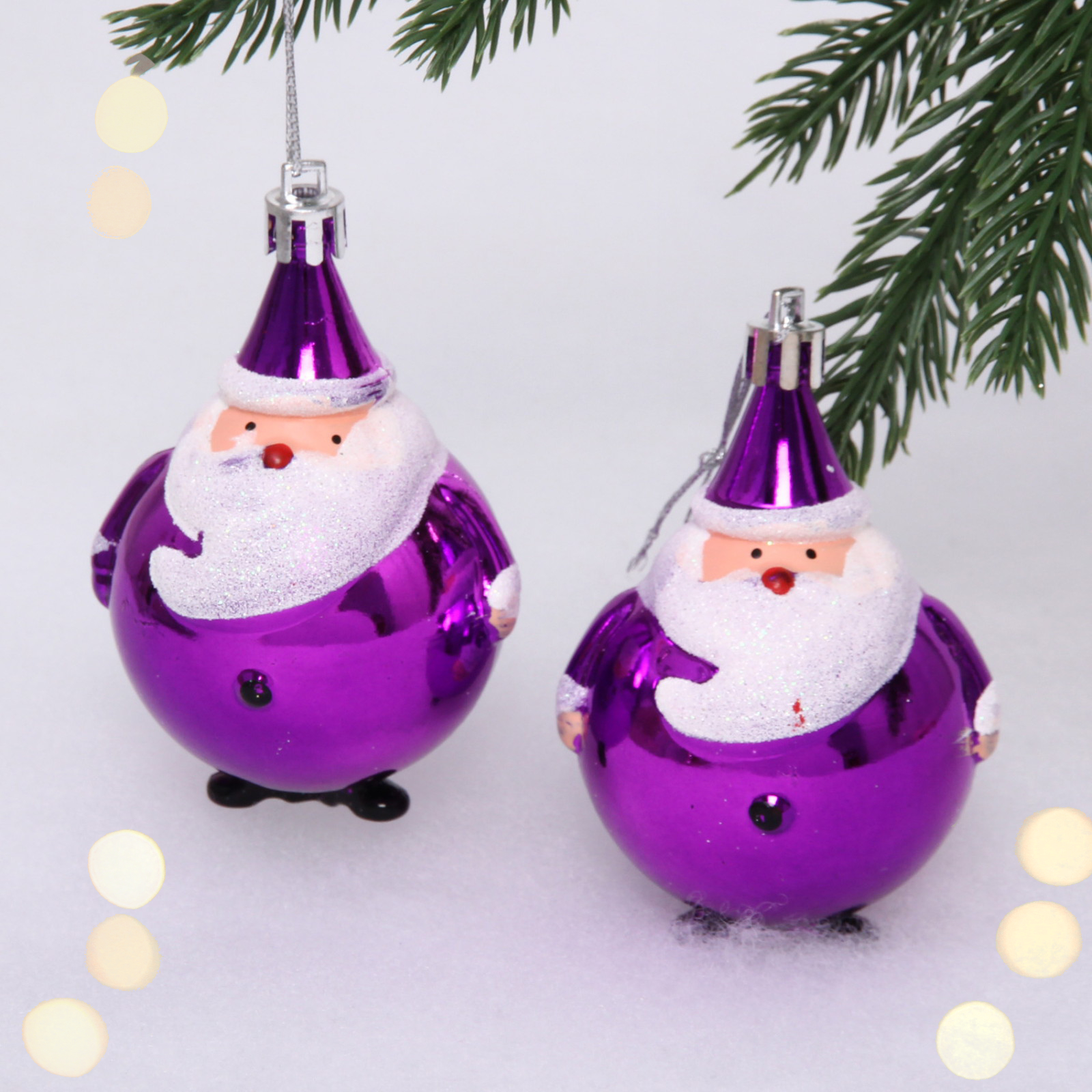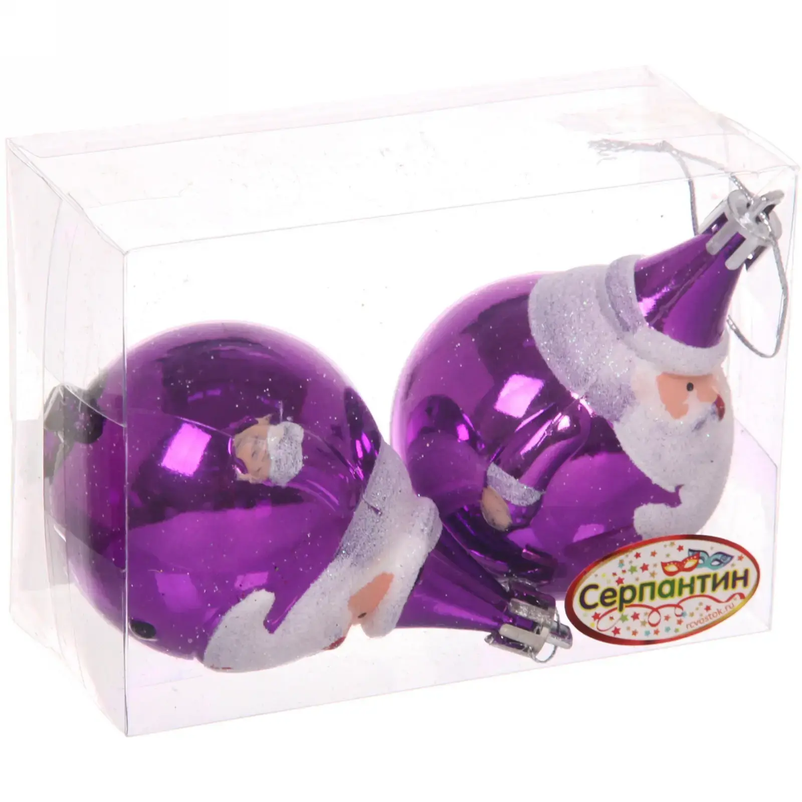 Размер каждой игрушки составляет 6 см, что делает их компактными и удобными для размещения на ветках елки. Фиолетовый цвет с блестящей поверхностью придаст вашему декору особый шарм. Упаковка из прозрачного пластика позволяет легко увидеть содержимое и защитить игрушки от повреждений.