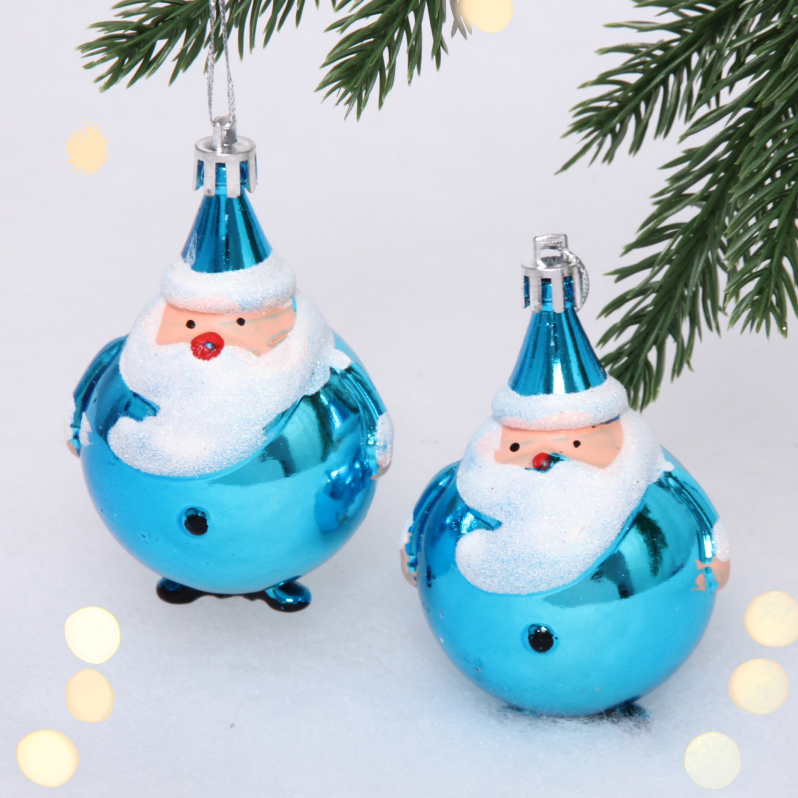 Елочные игрушки «Круглый Дед Мороз» 6 см (набор 2 шт), Синий, пластик, для елки и декорирования