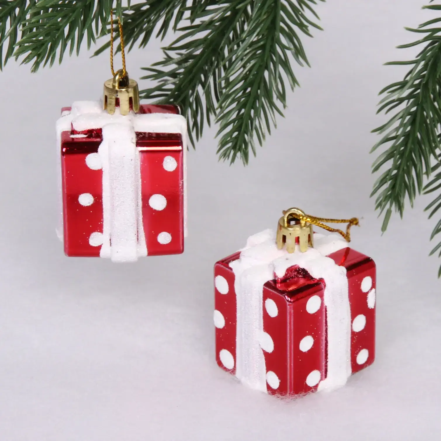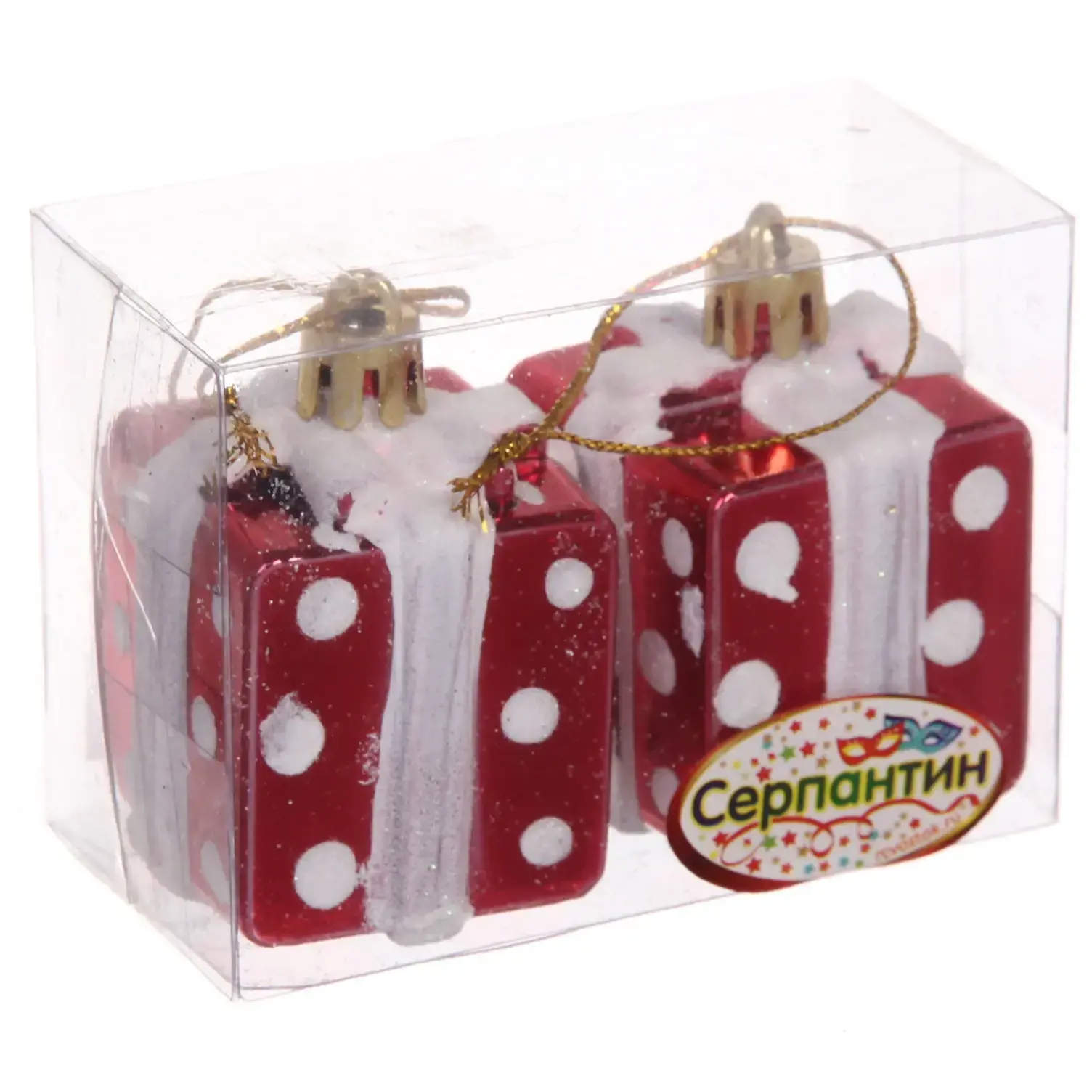 Елочные игрушки «Подарочки в горошек» 3,5 см (набор 2 шт), Красный, пластик, для елки и декорирования