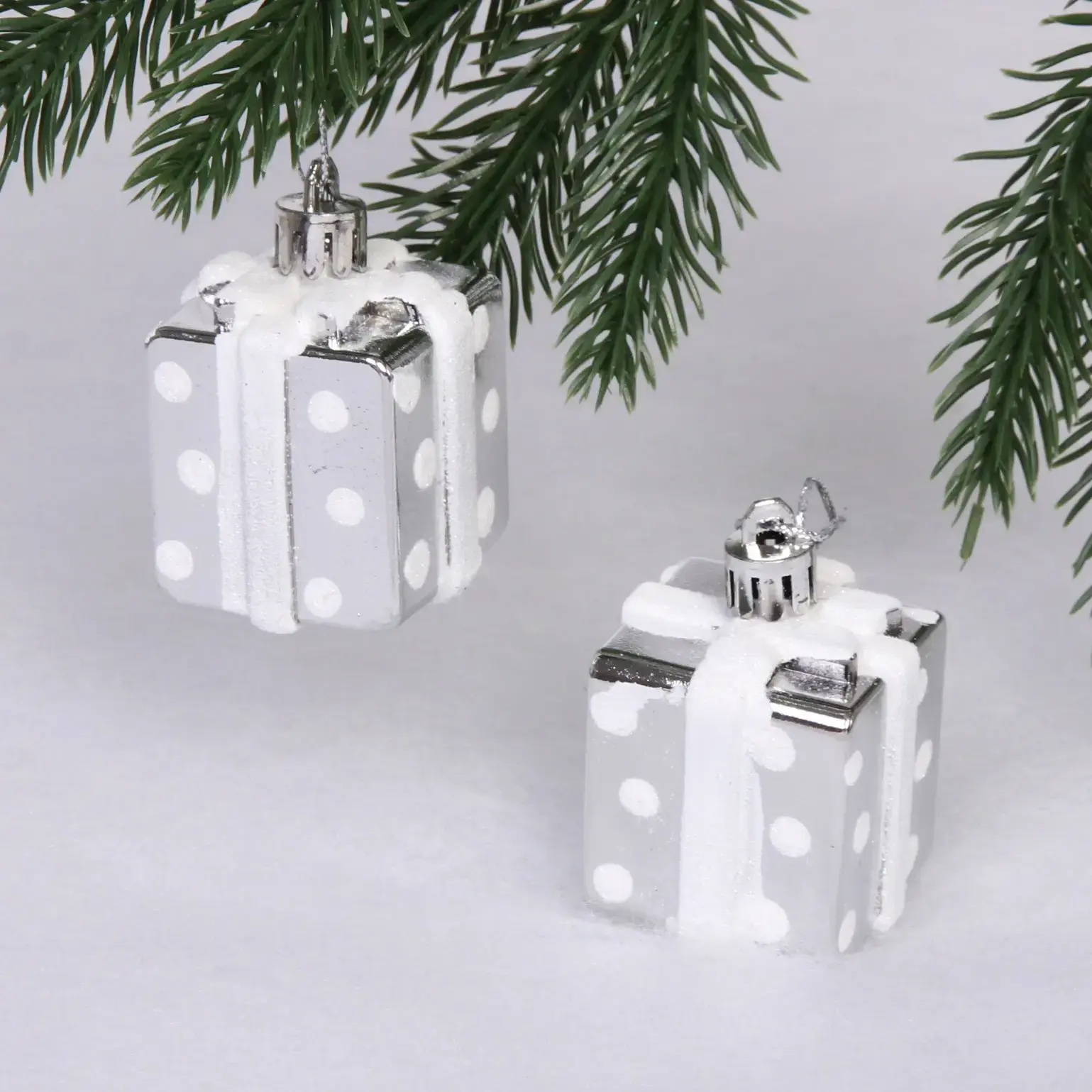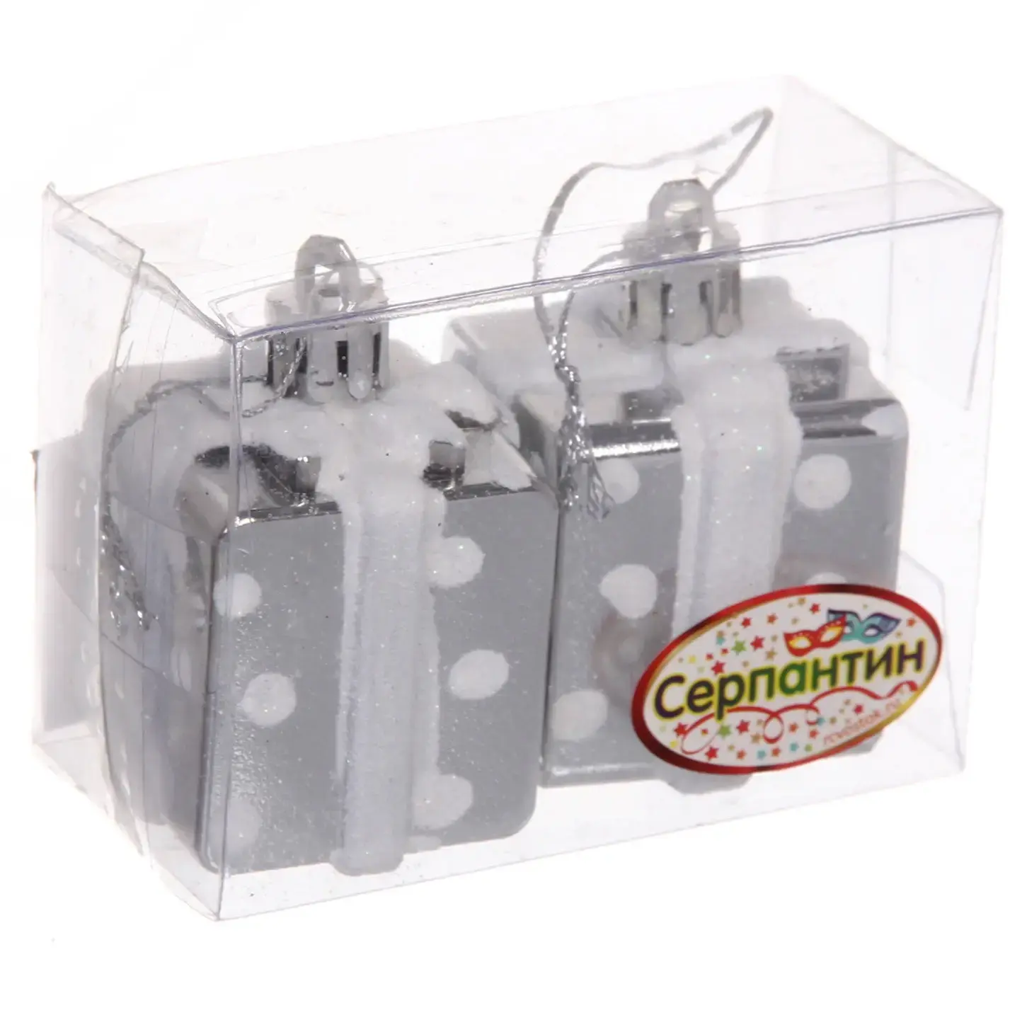 Елочные игрушки «Подарочки в горошек» 3,5 см (набор 2 шт), Серебро, пластик, для елки и декорирования