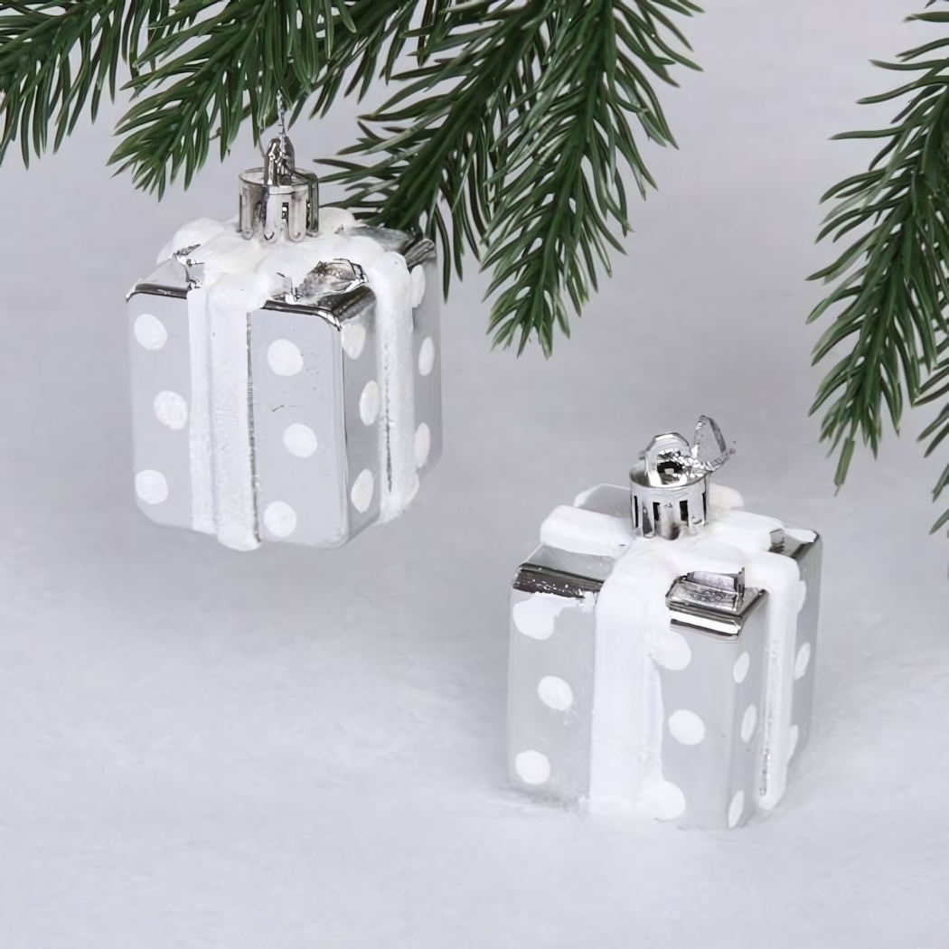 Игрушки рассчитаны на простое и надёжное крепление: в каждой включён металлический держатель с кольцом, позволяющий быстро повесить их на любую ветку без дополнительных инструментов. Подходят как для крупной, так и для компактной ёлки, а также могут стать стильным акцентом на подарочных упаковках.