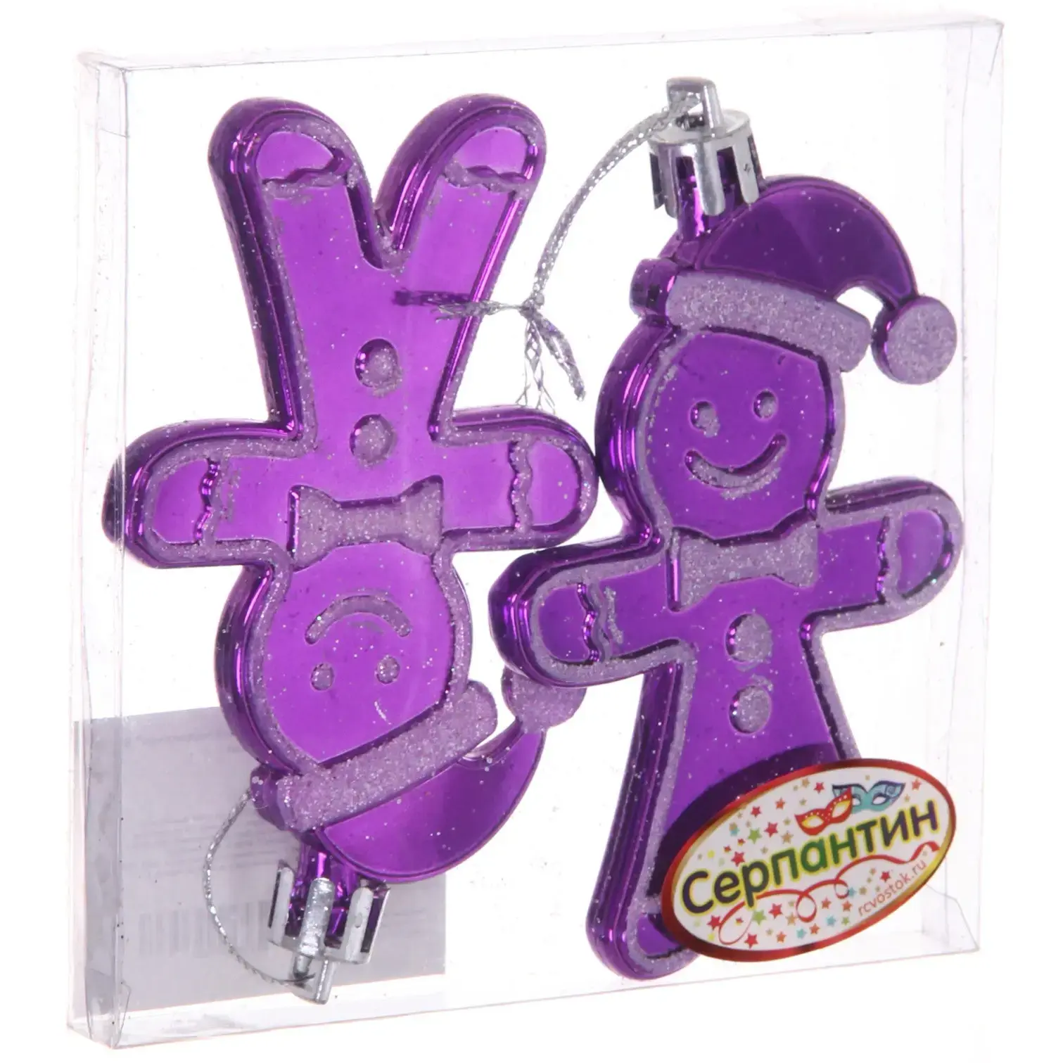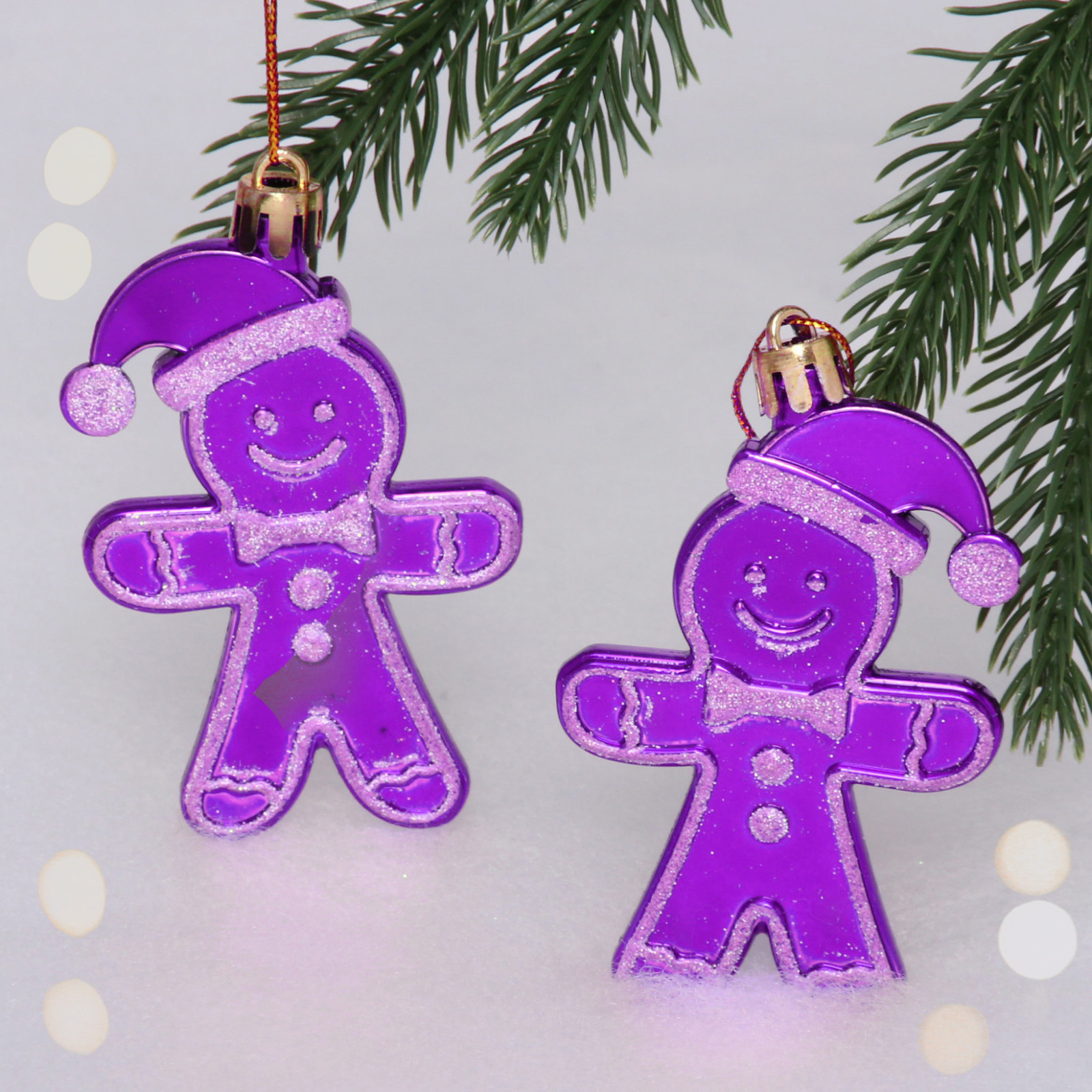 Елочные игрушки «Пряничный человечек» 8 см (набор 2 шт), Фиолетовый, пластик, для елки и декорирования