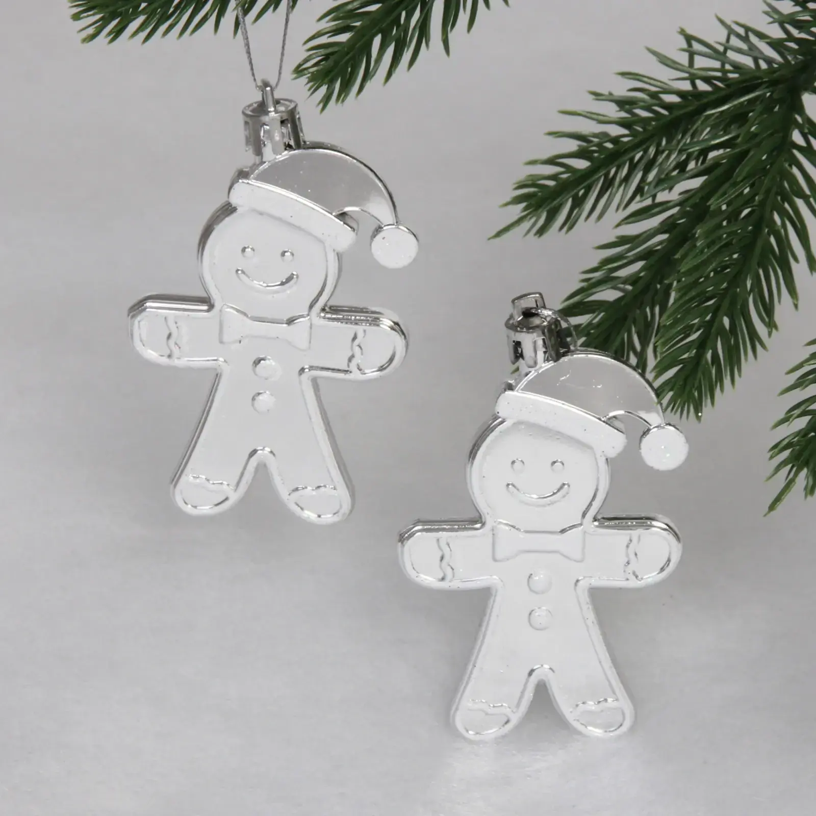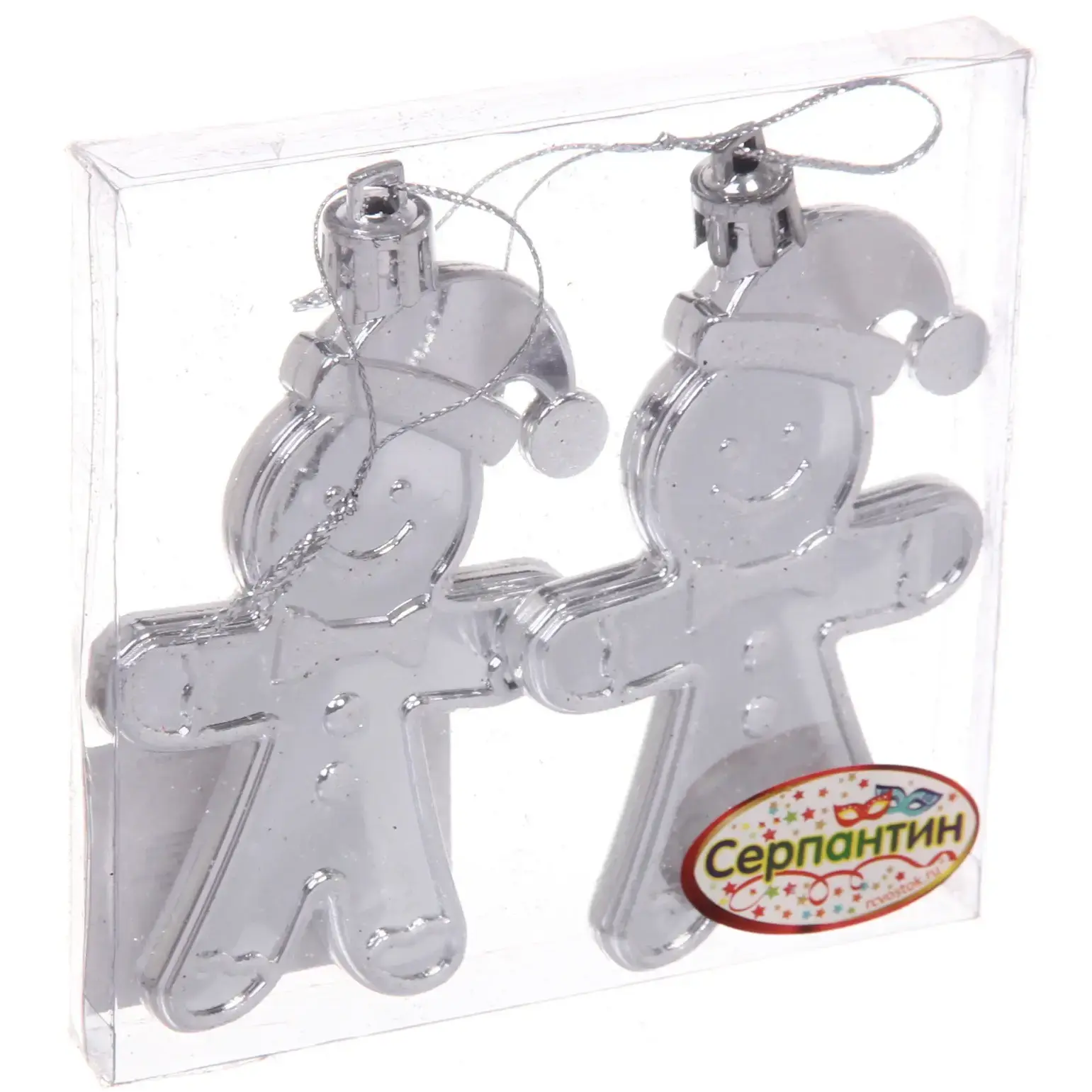 Елочные игрушки «Пряничный человечек» 8 см (набор 2 шт), Серебро, пластик, для елки и декорирования