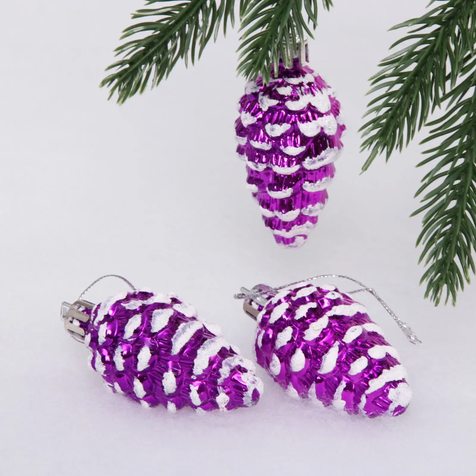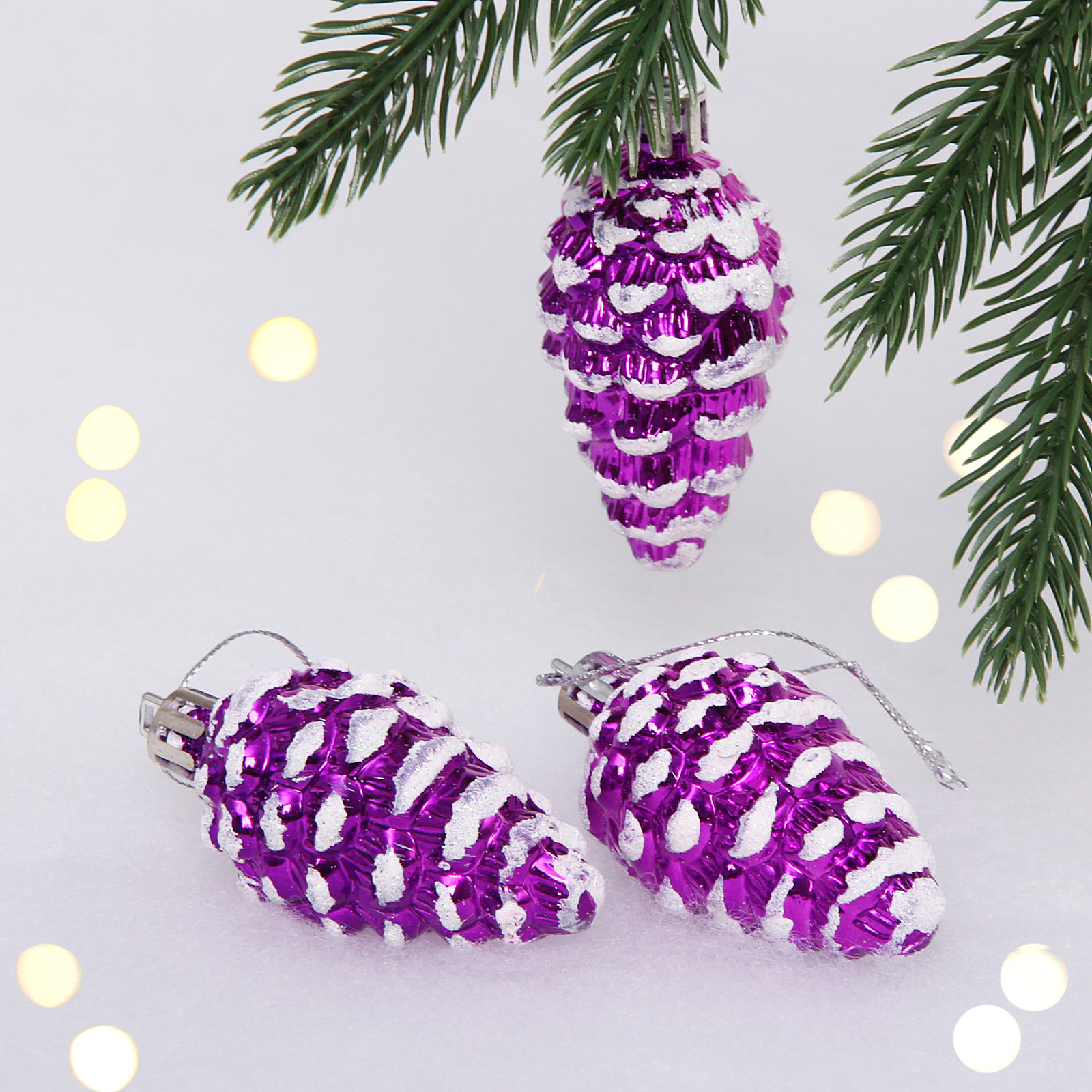 Эти уникальные елочные игрушки в форме шишек добавят изысканности и уюта в ваш новогодний декор. Их фиолетовый цвет с белыми узорами, имитирующими снежные шапки, создаст атмосферу зимней сказки и порадует вас и ваших близких. Каждая игрушка имеет размер 5,5 см, что делает их идеальными для украшения как больших, так и маленьких елок.