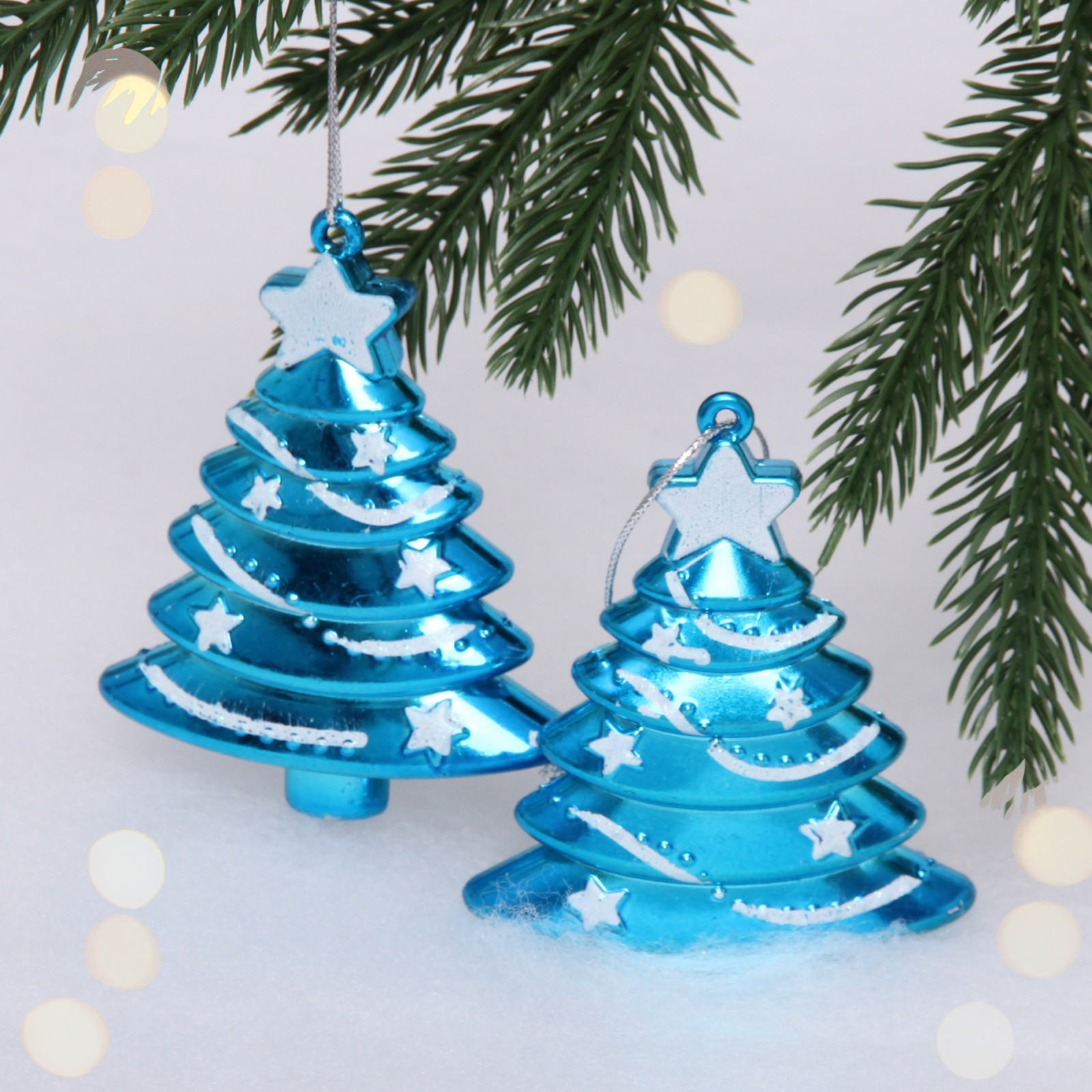 Эти яркие и блестящие елочные игрушки в виде ёлок добавят особый шарм вашему новогоднему декору. Изготовленные из качественного пластика, они не только красивы, но и долговечны, что позволяет использовать их из года в год. Синий цвет и металлический блеск делают их идеальными для создания стильного и современного оформления вашей елки.