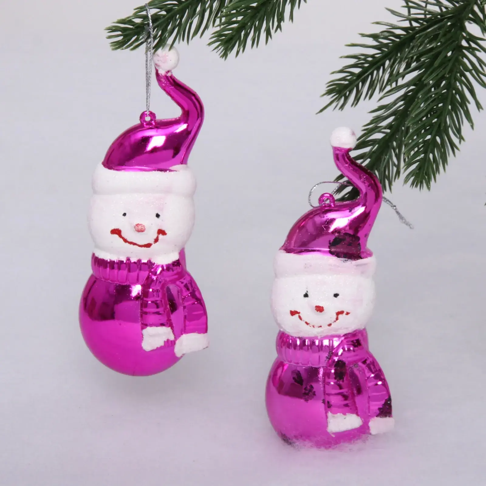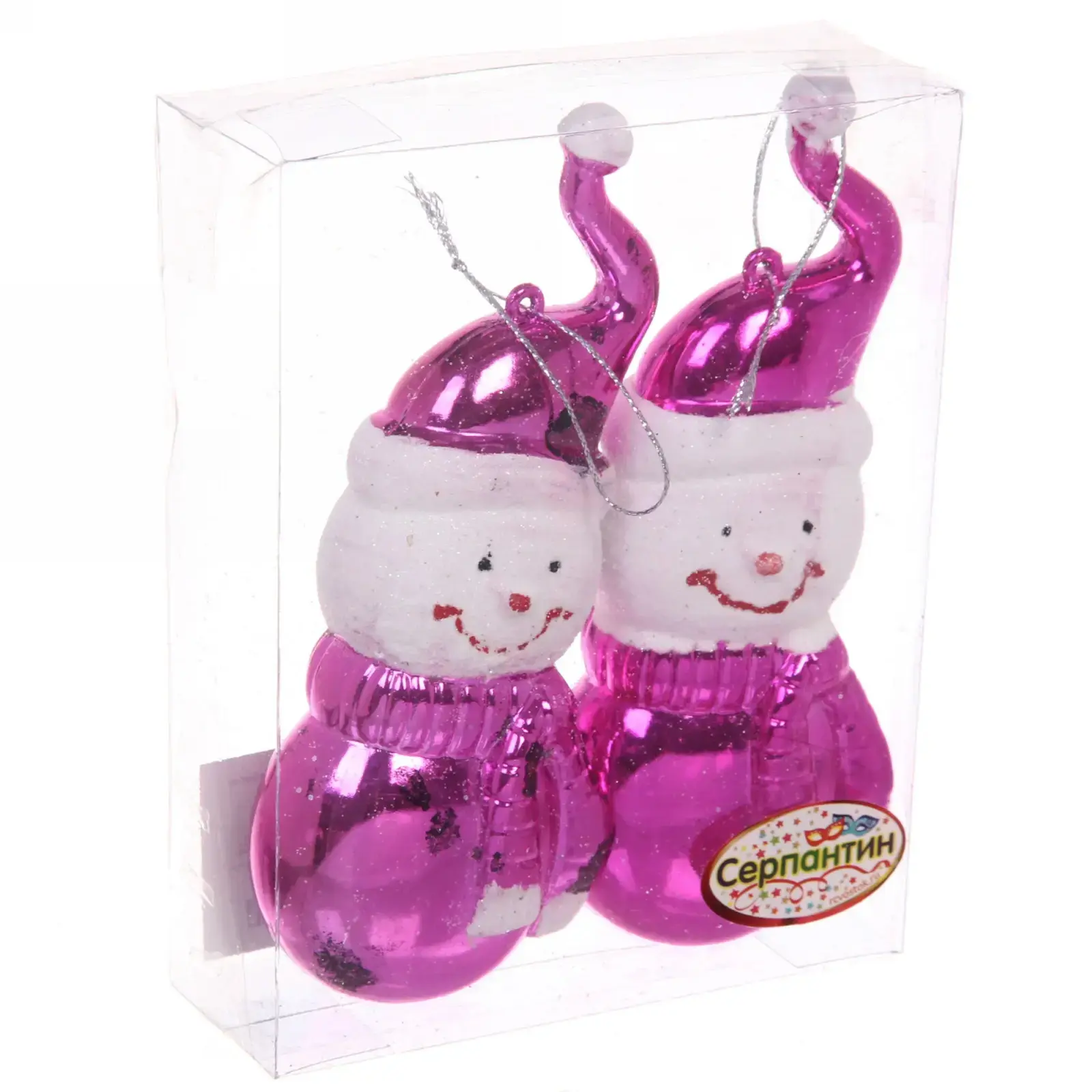 Елочные игрушки «Снеговички» 13 см (набор 2 шт), Розовый, пластик, для елки и декорирования