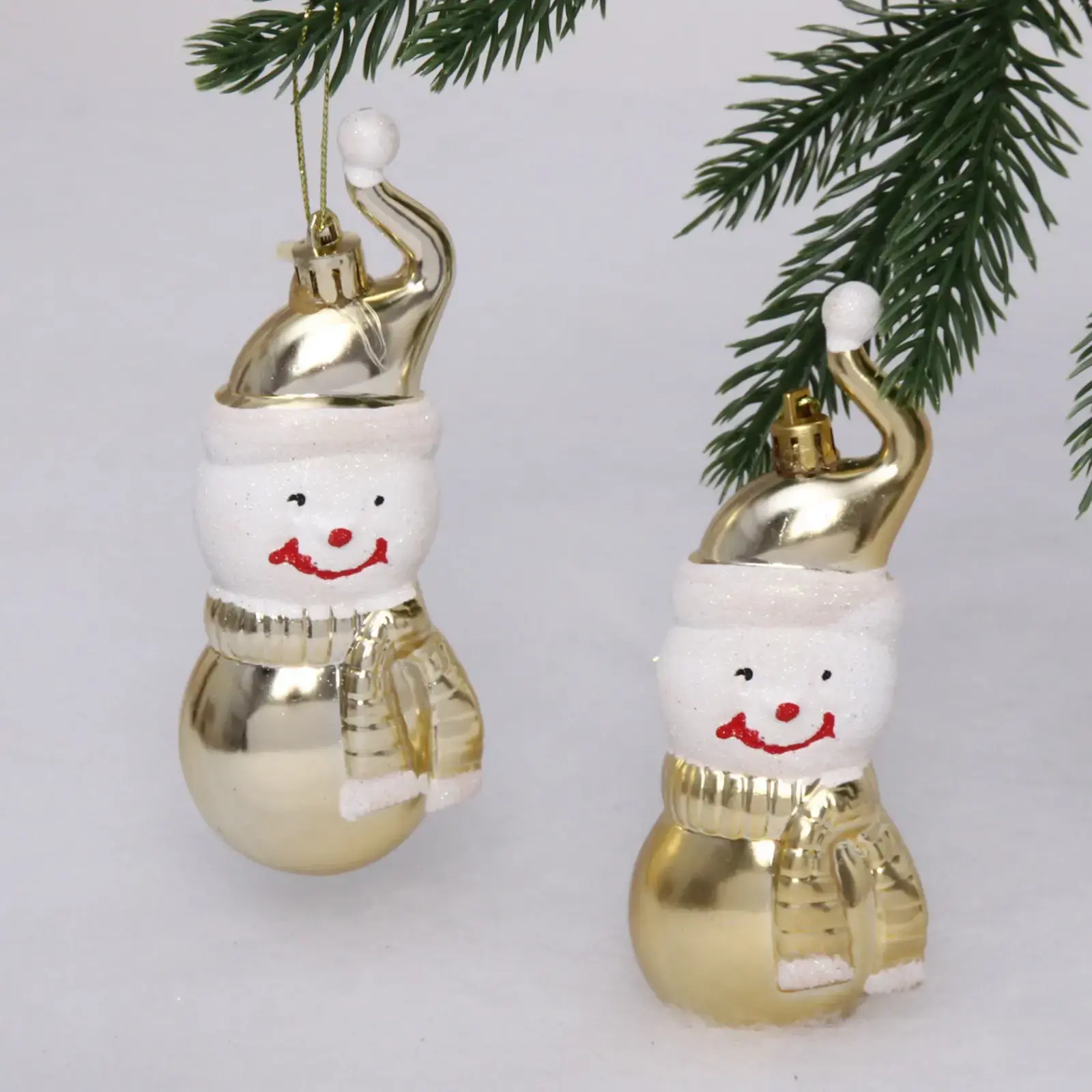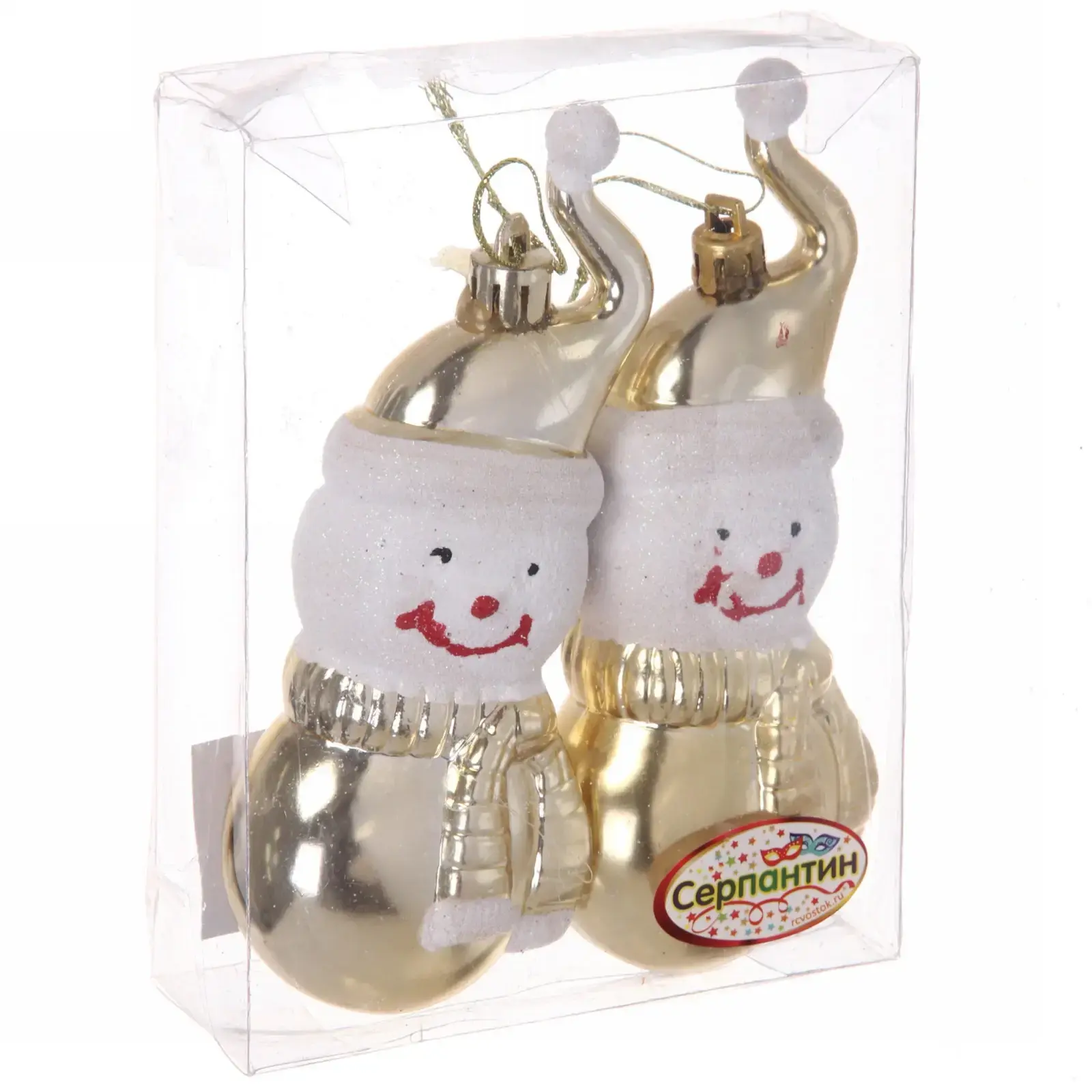 Размер каждой игрушки составляет 13 см, что делает их заметными, но не слишком громоздкими. Золотистый цвет нижней части снеговиков добавляет элегантности, а белая верхняя часть с улыбающимися лицами создает атмосферу радости и веселья. Эти игрушки станут отличным дополнением к вашему новогоднему декору и создадут незабываемую атмосферу праздника.