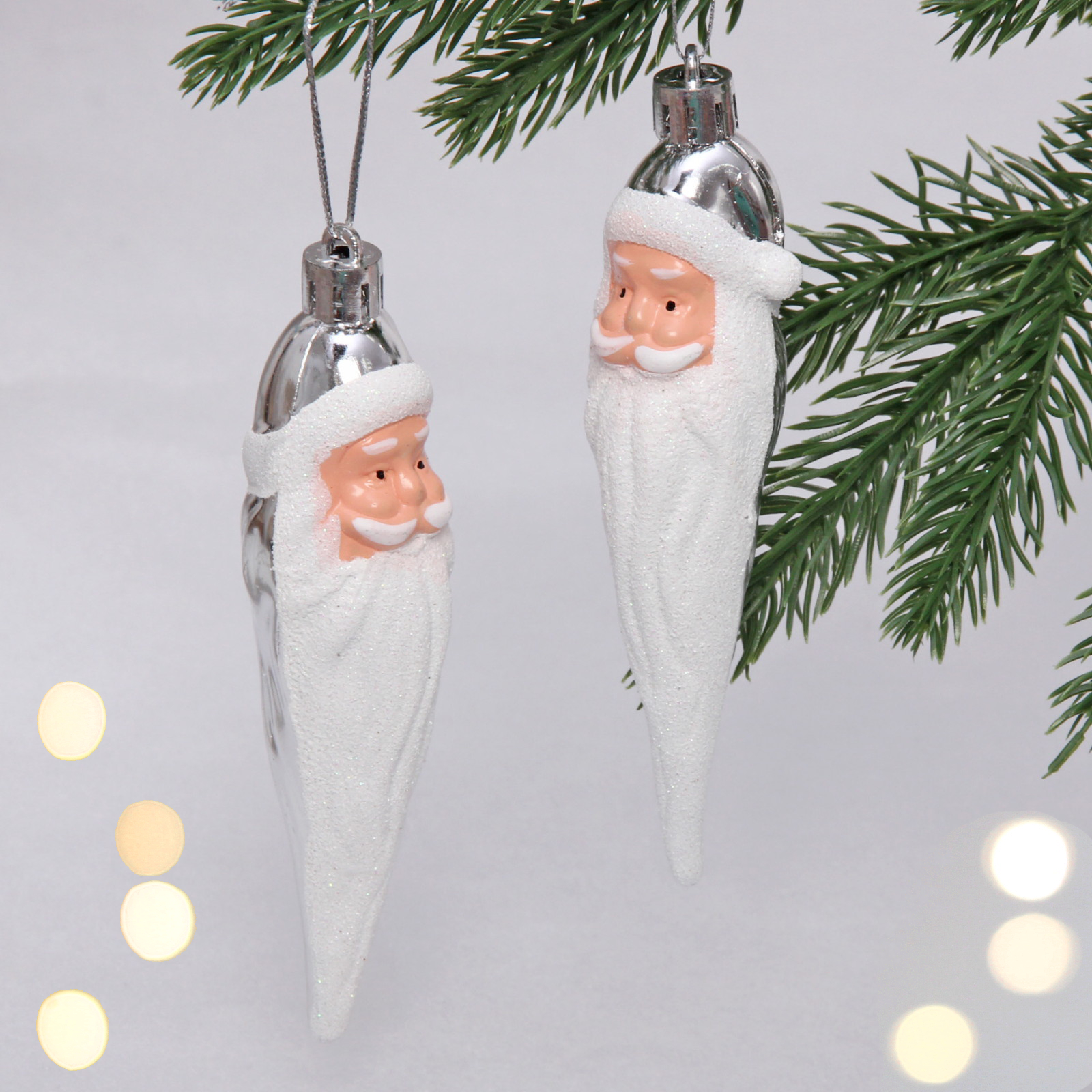 Эти уникальные елочные игрушки в форме бородатого человека добавят волшебства в ваш новогодний декор. Изготовленные из качественного пластика, они не только красивы, но и долговечны, что позволяет использовать их из года в год. Каждая игрушка имеет размер 12 см и выполнена в серебристом и белом цветах, что делает их идеальными для любого стиля оформления елки.