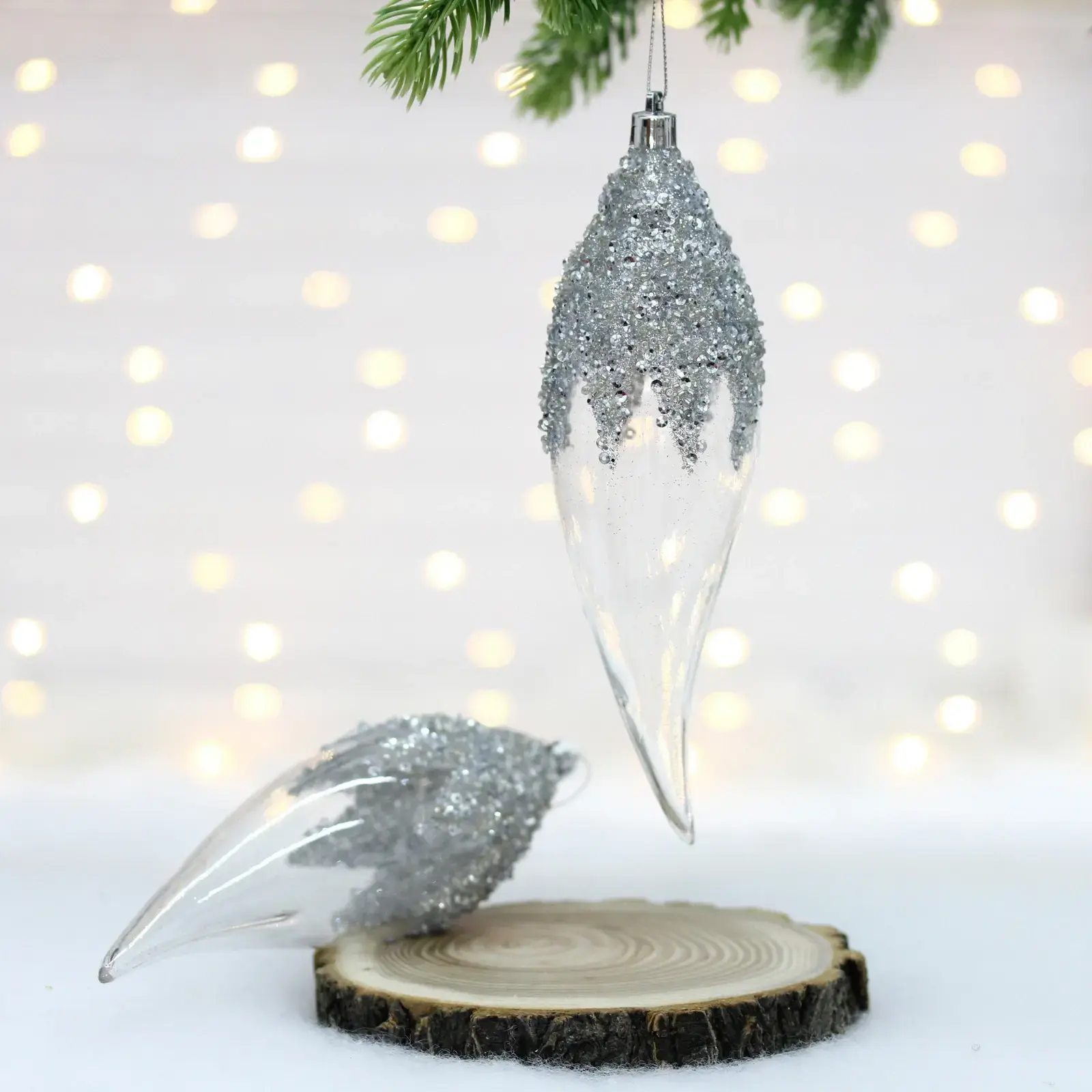 Елочные игрушки «Волшебная сказка» 5.4*5.4*19.5 см (набор 2 шт), Белый, пластик, для елки и декорирования