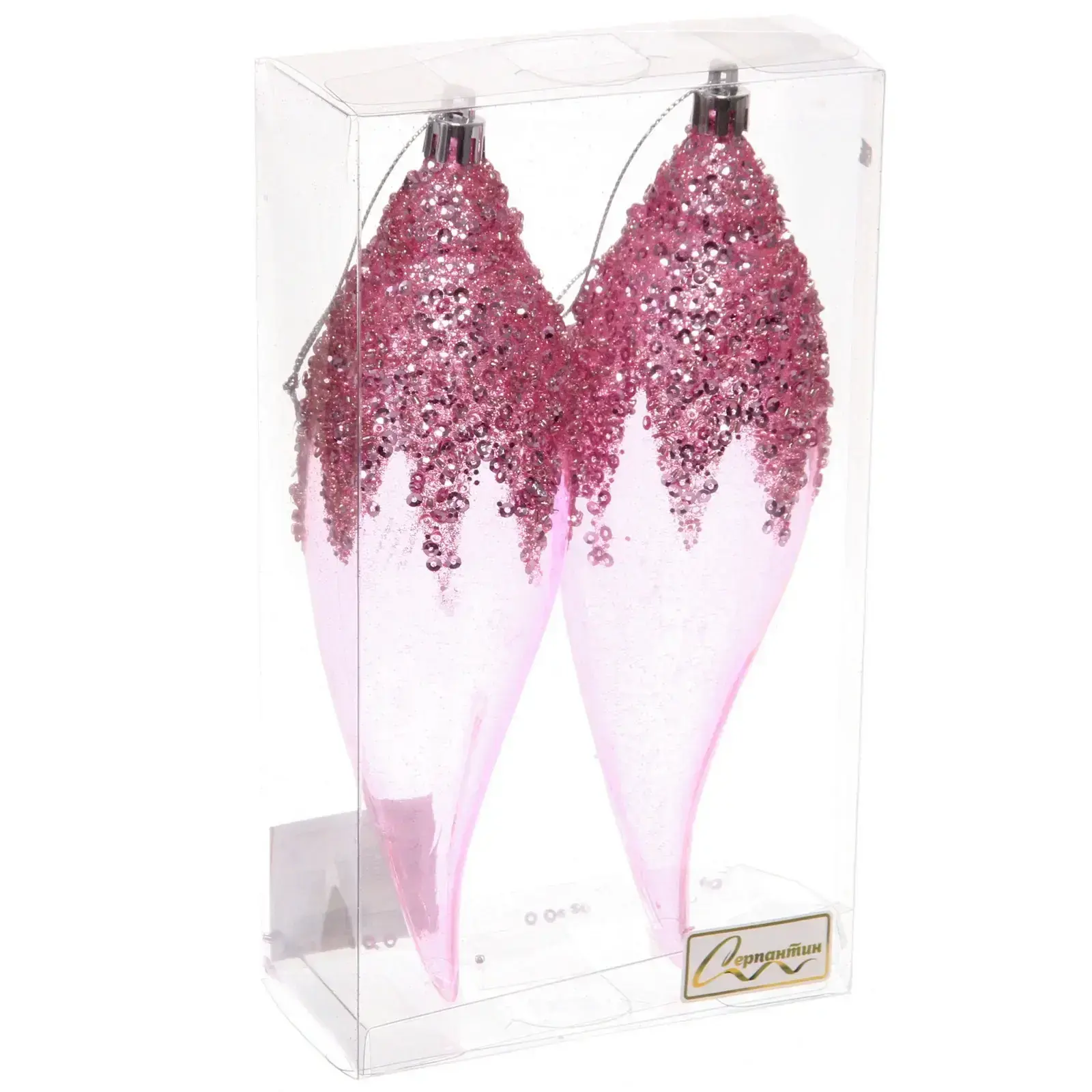 Почему стоит выбрать именно эти игрушки? Во-первых, они изготовлены из качественного пластика, что обеспечивает их долговечность и устойчивость к повреждениям. Во-вторых, их яркий и привлекательный дизайн с блестками делает их настоящим украшением любой елки. Наконец, в наборе вы получаете две игрушки, что позволяет создать гармоничное оформление.
