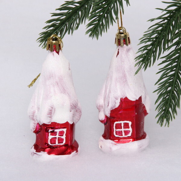 Елочные игрушки «Загадочный домик» 9 см (набор 2 шт), Красный, пластик, для елки и декорирования