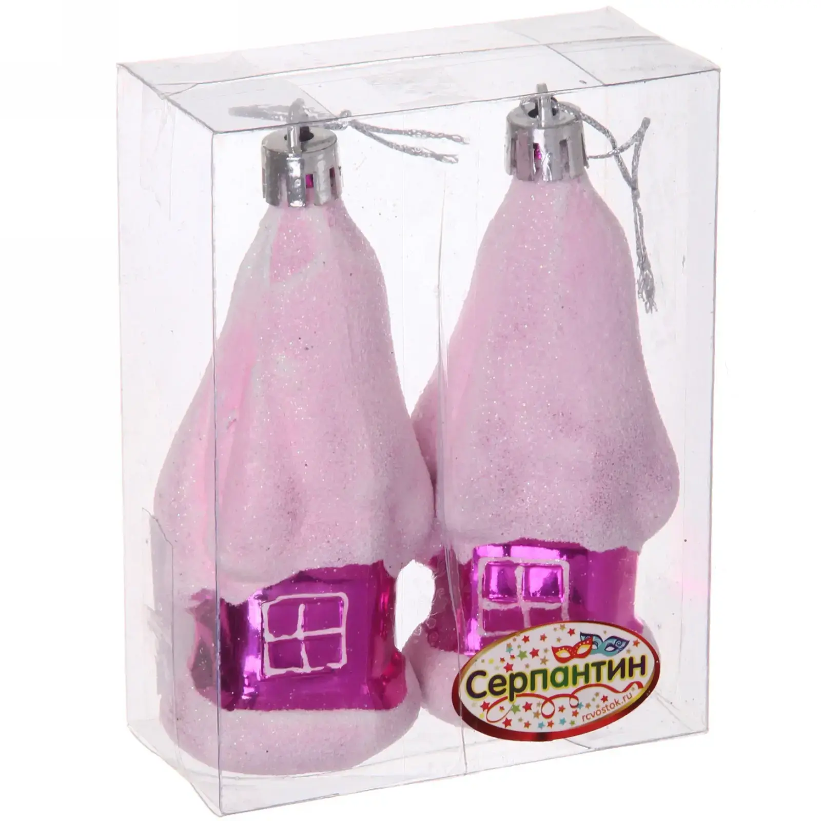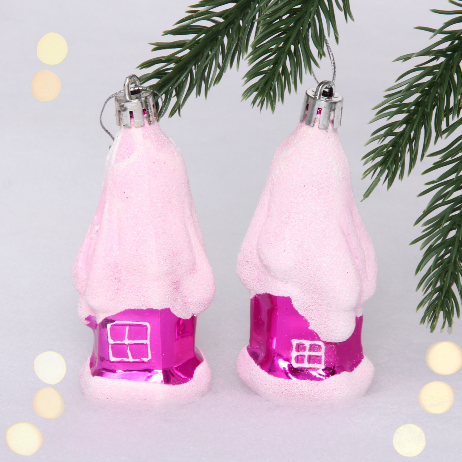 Елочные игрушки «Загадочный домик» 9 см (набор 2 шт), Розовый, пластик, для елки и декорирования